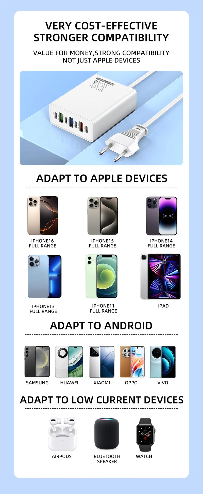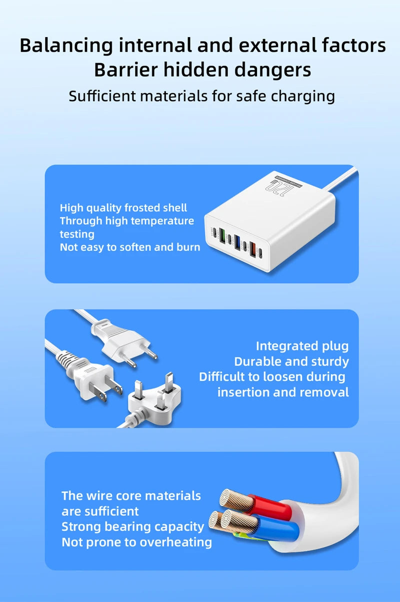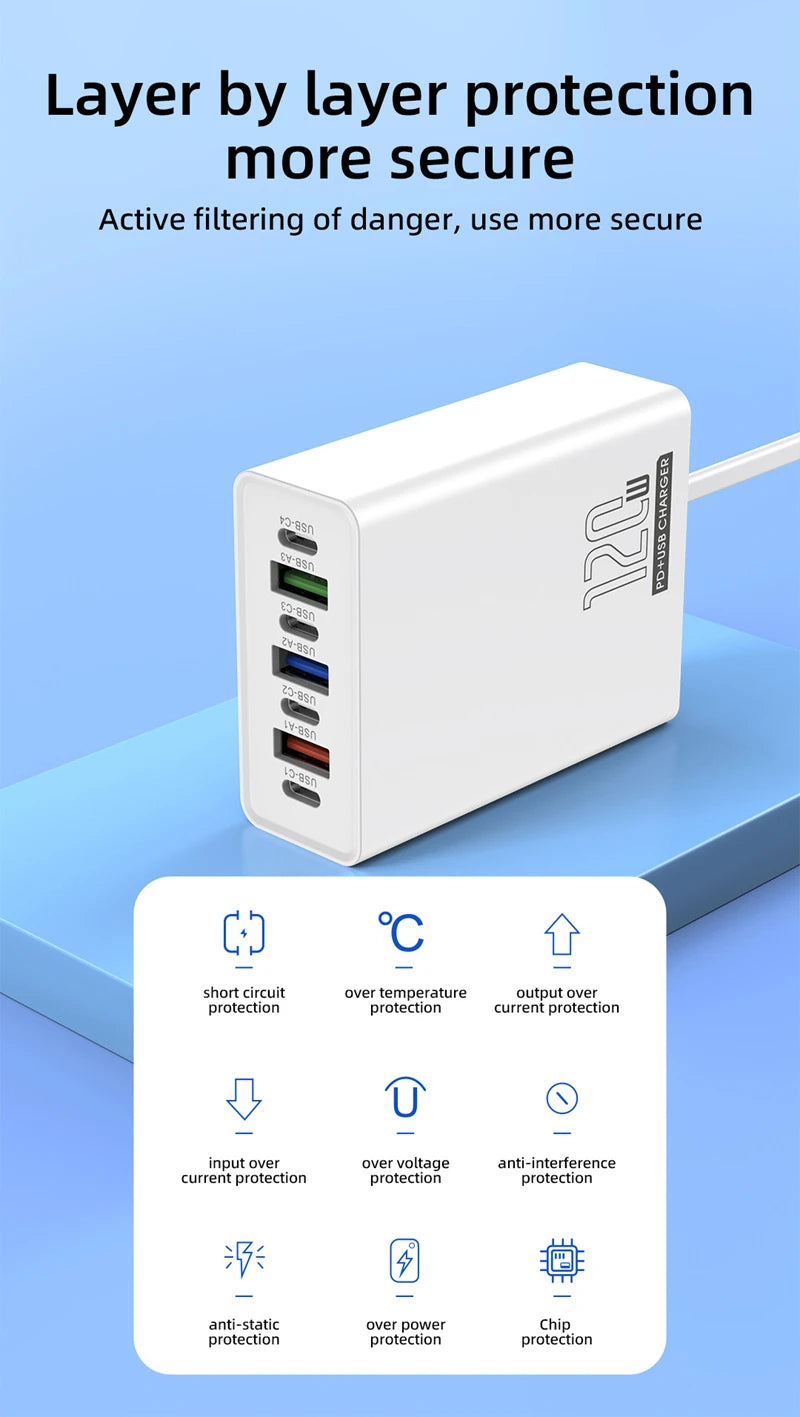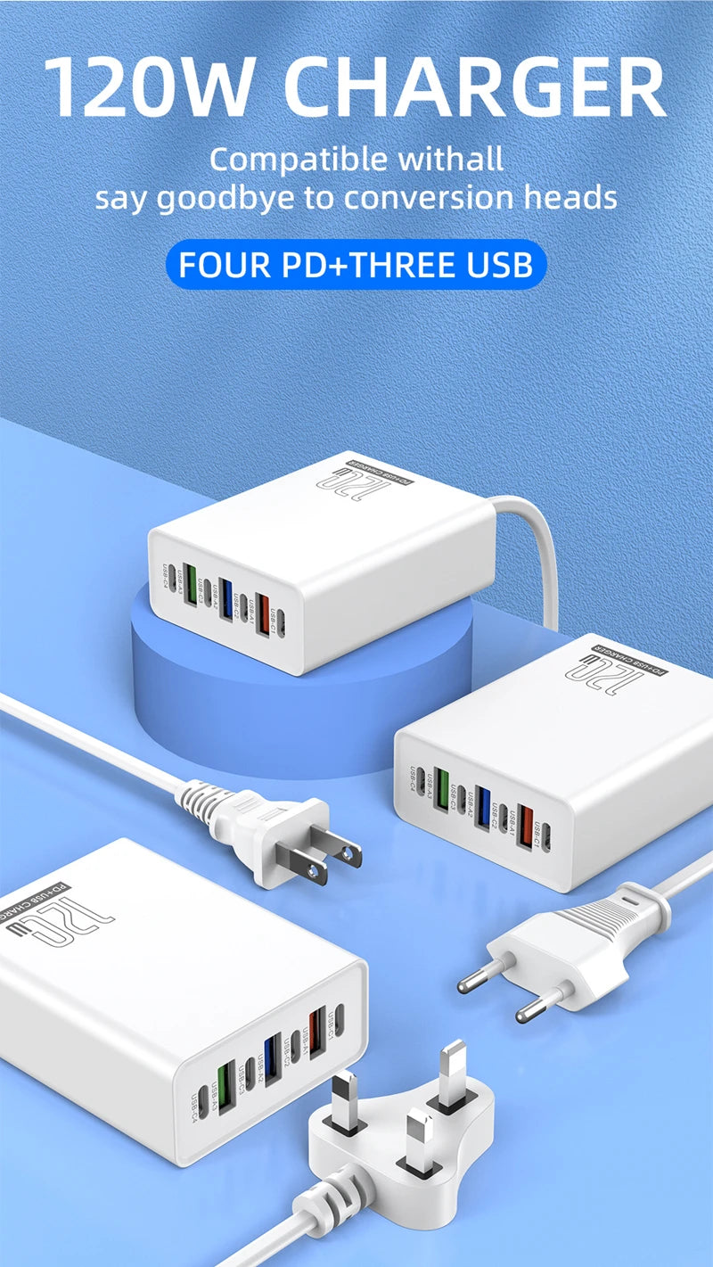 Xiaomi 120W oplaadkop 7 poorten 3USB + 4PD snellaadkop voor telefoon 5V4A