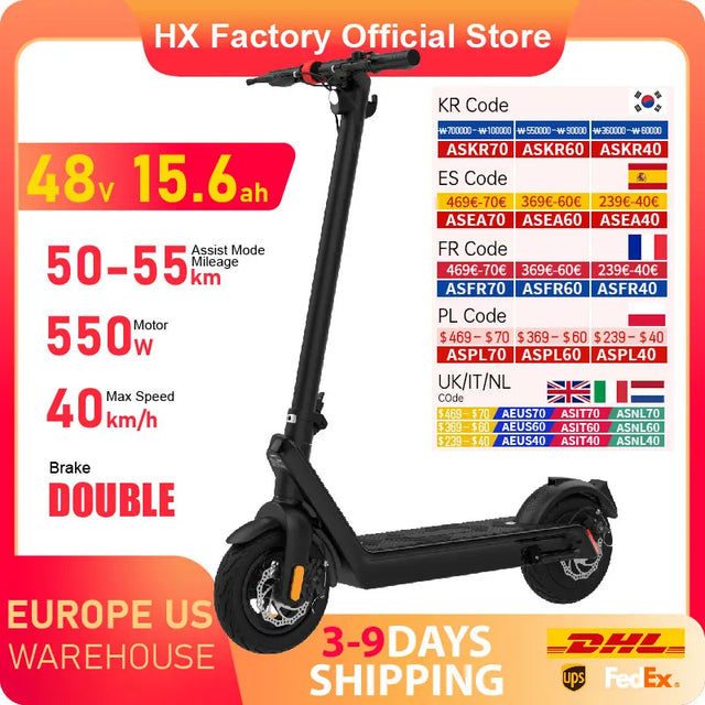 HX X9 Elektrische scooter voor volwassenen 15,6 AH 550 W 48 V 40 km/u Opvouwbare elektrische kickscooter 10 inch E-scooter Elektrisch skateboard