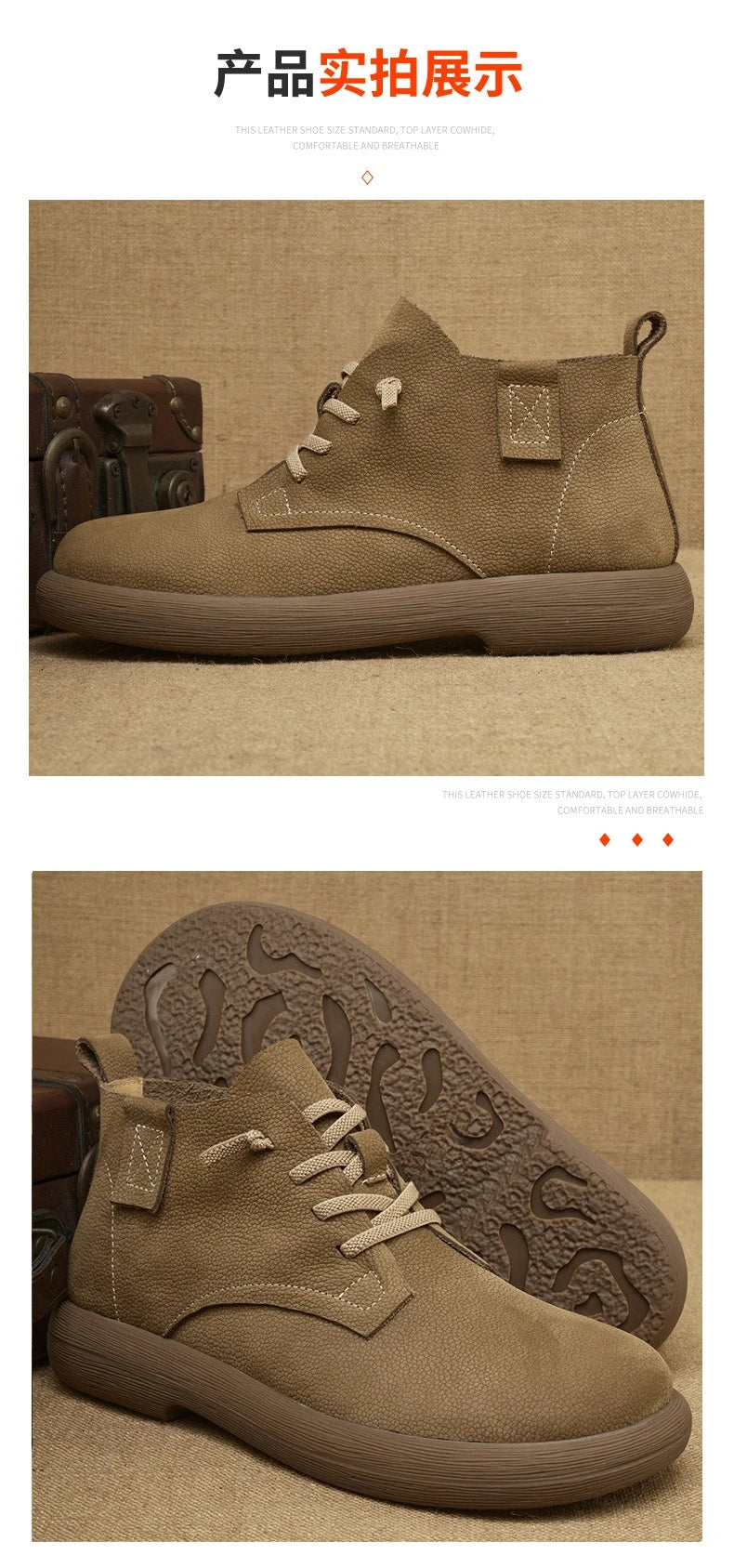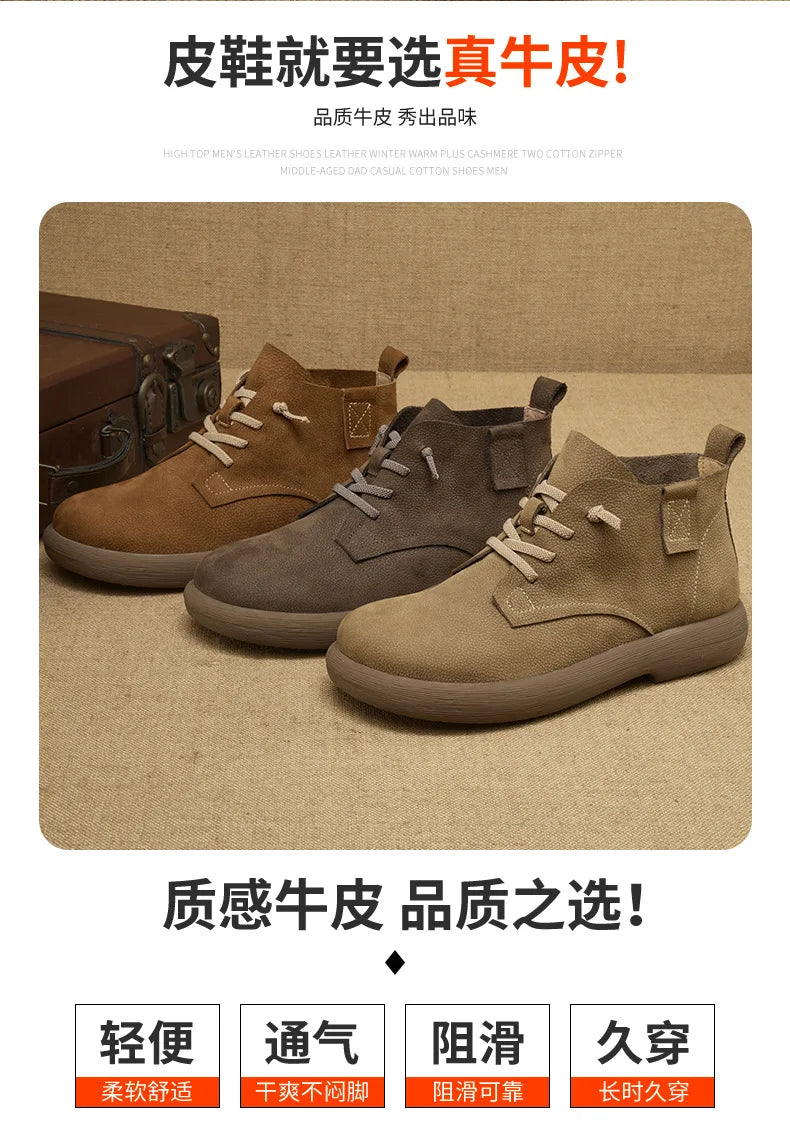 Heren Koeienhuid Lichte zool Voorkant Veter Enkellaarsjes Outdoor Casual Scho...