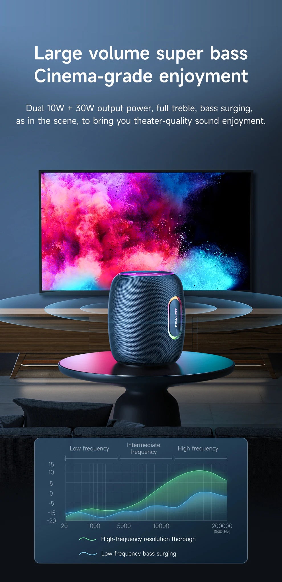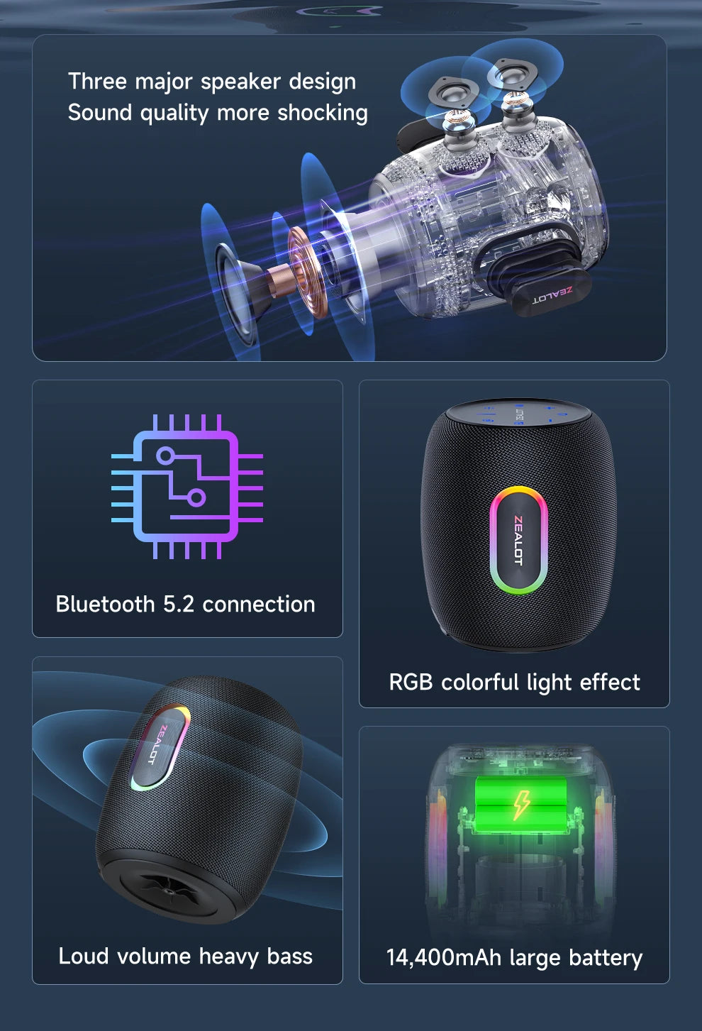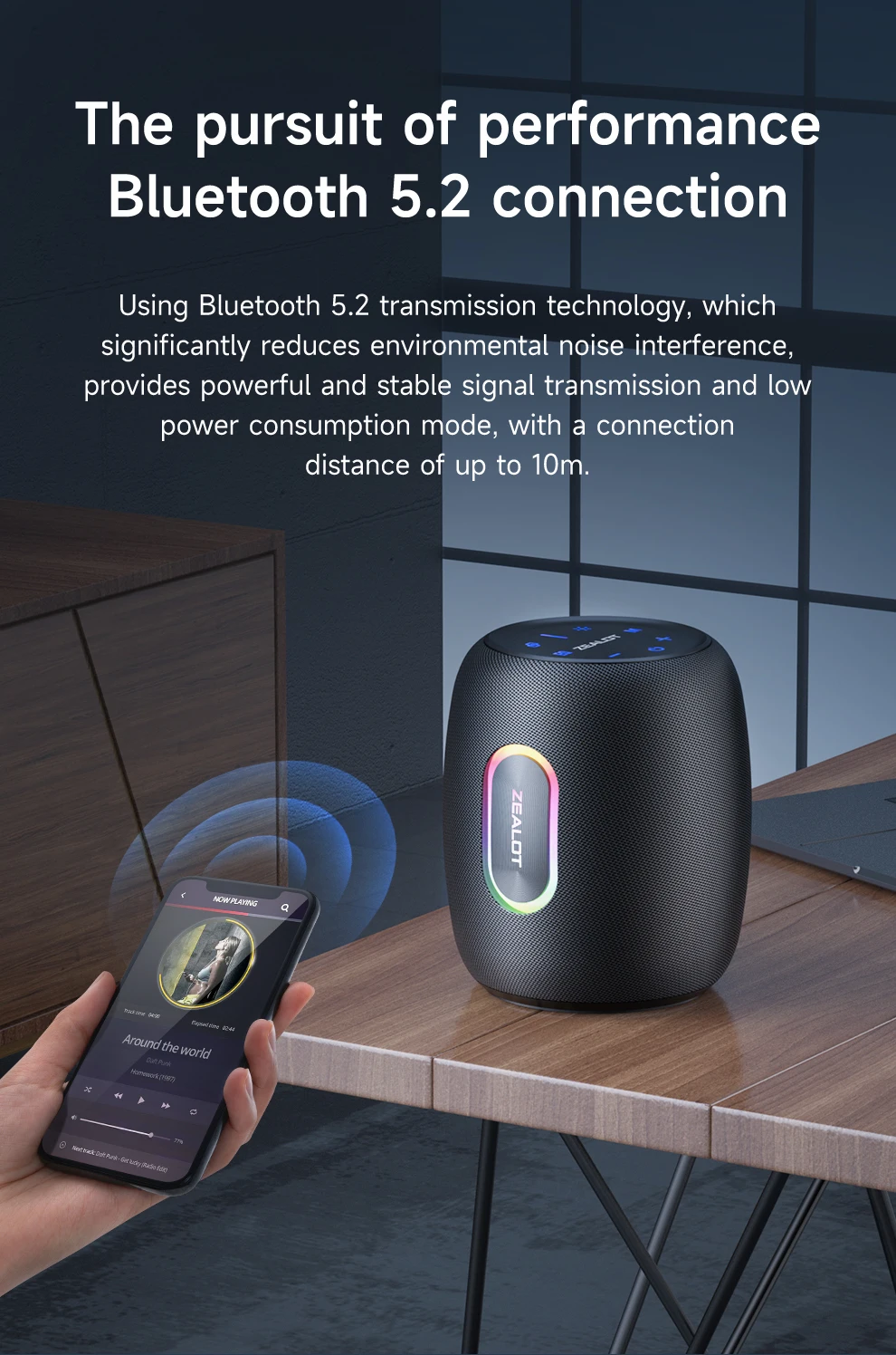 Ervaar naadloze muziekstreaming met de krachtige draadloze Bluetooth 5.2-luidspreker van de ZEALOT S64, waardoor uw audio-ervaring bij elk gebruik wordt verbeterd.