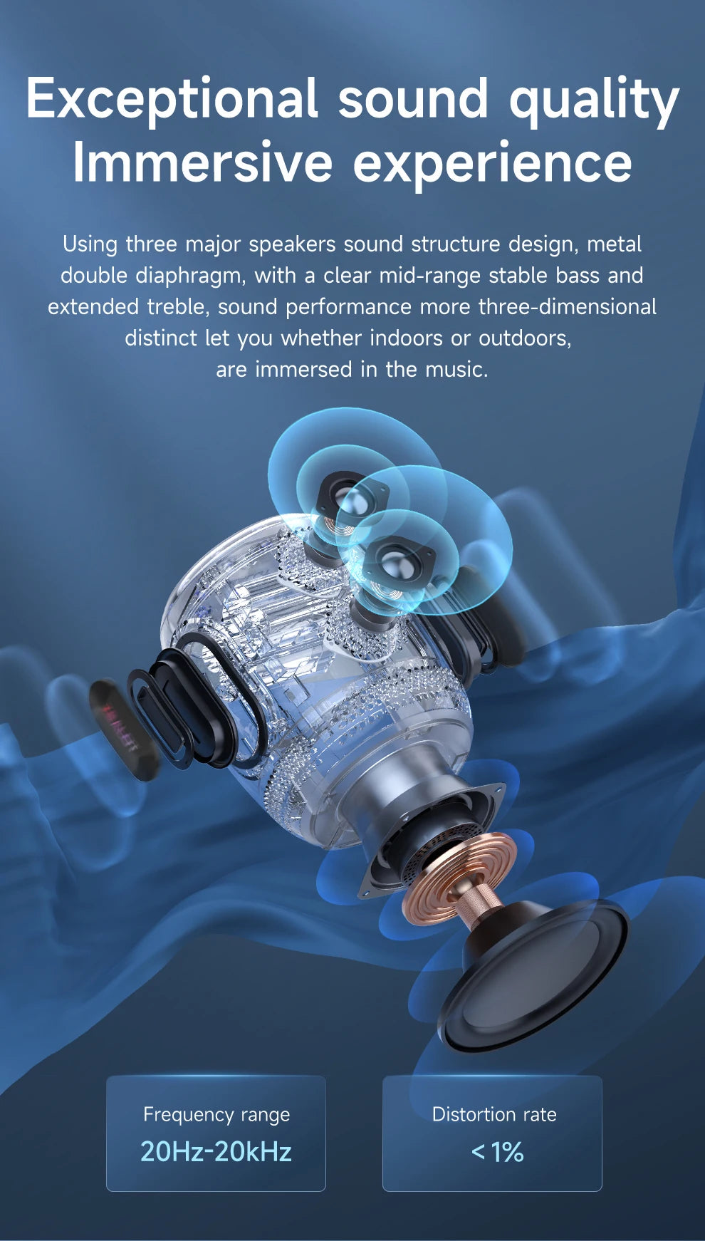 Full Bass Stereo - Bluetooth-luidsprekers bieden meeslepend geluid, rijke bassen, middenhoge tonen en dynamisch geluid. Zelfs op maximaal volume hoor je geen haperingen, net als bij een liveconcert.