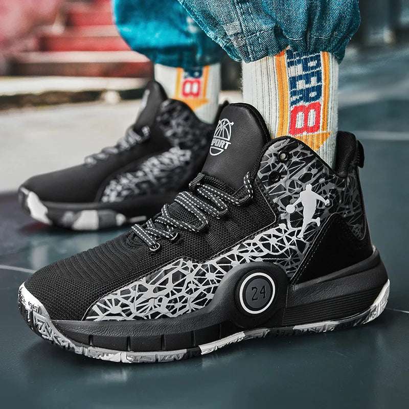 Kinderbasketbalschoenen, modieuze hoge veldtrainingsschoenen, antislip mesh, comfortabele basketbalschoen...