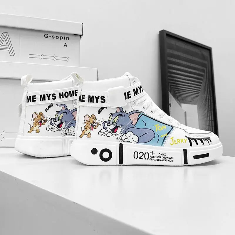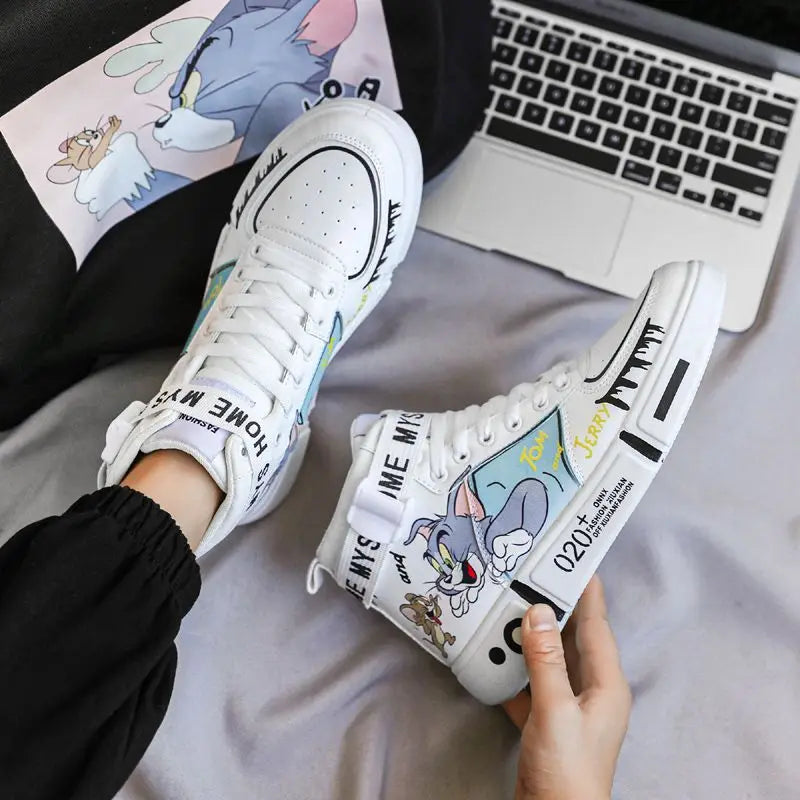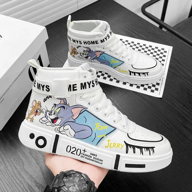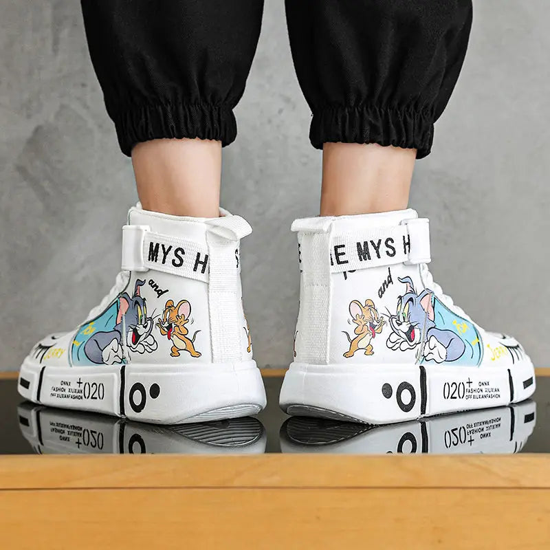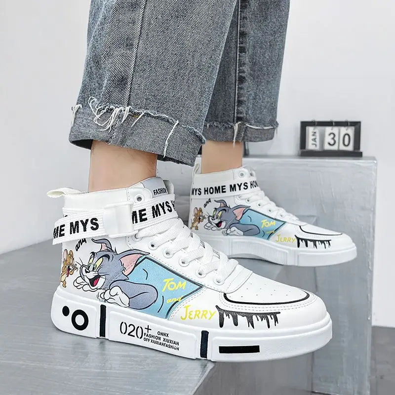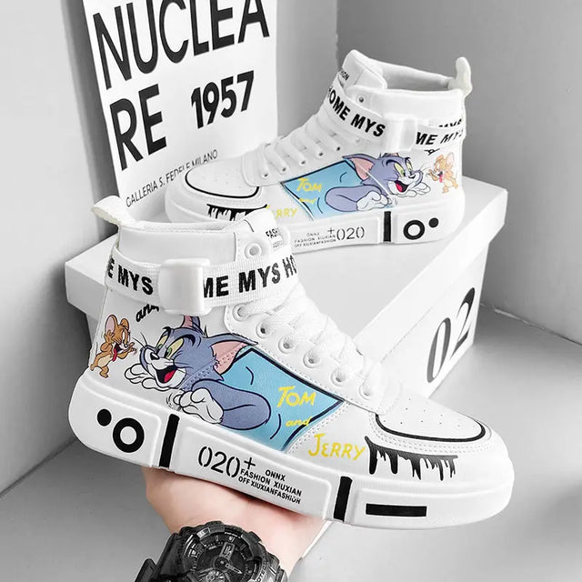 Hoge cartoon sportschoenen met leeuwenkop, muiskatpatroon, geschikt voor stellen, casual schoenen voor jo...