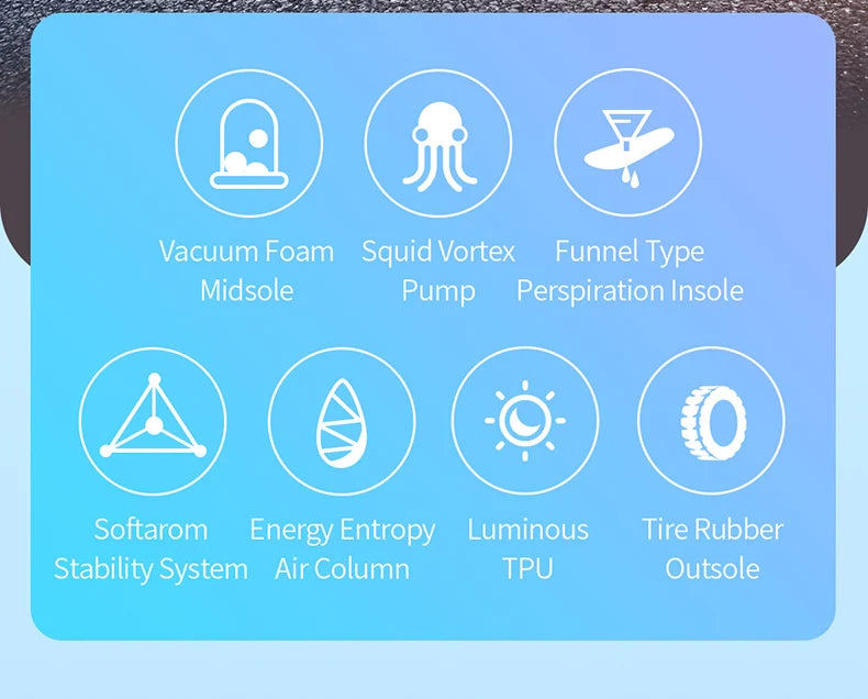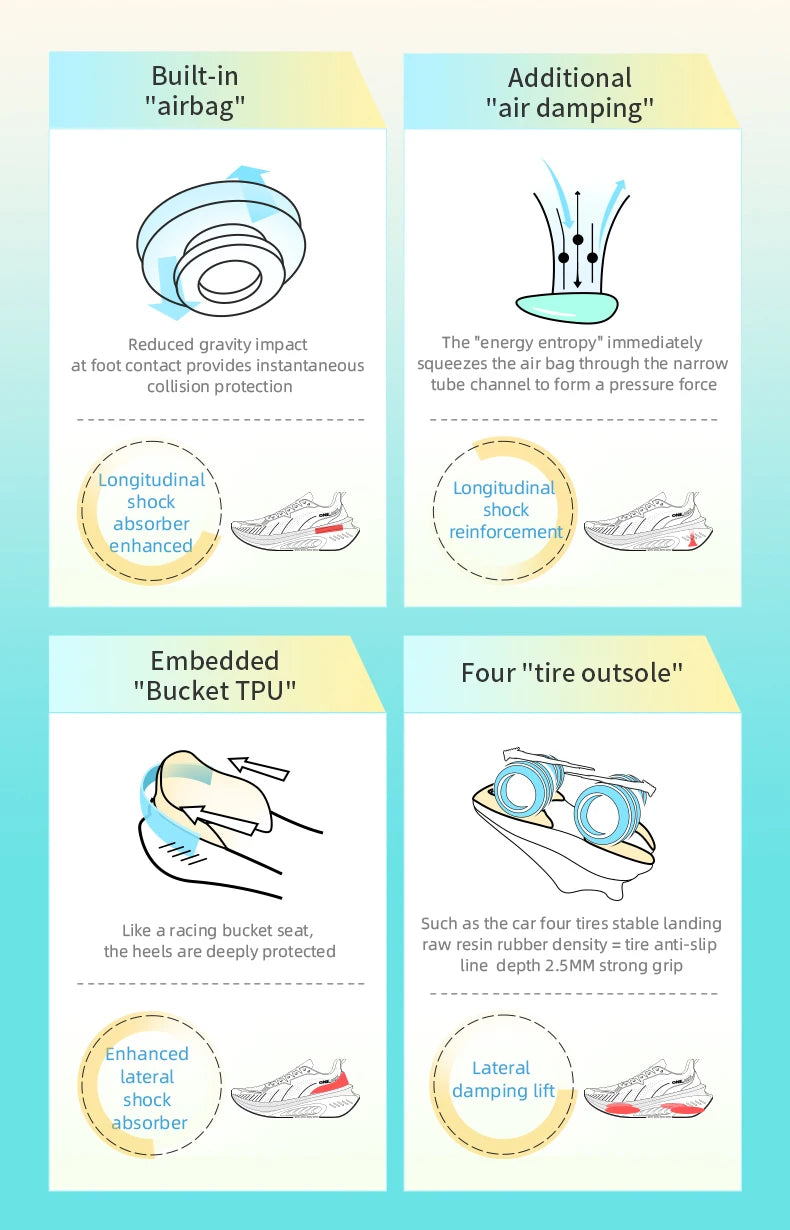 Het Energy Entropy Air Column Cushioning System in de achtervoet is ontworpen voor responsieve schokabsorptie bij zware impact.