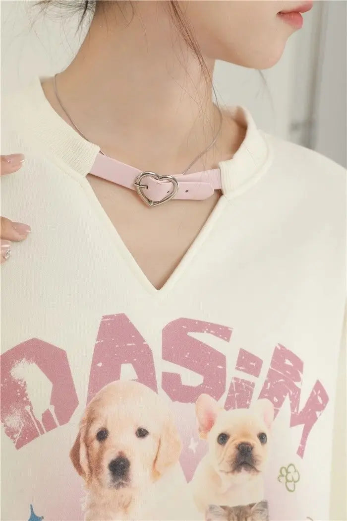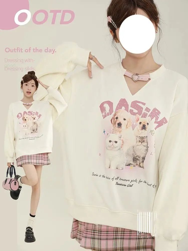 College-stijl schattige bedrukte fleece hoodie met lange mouwen voor dames en...