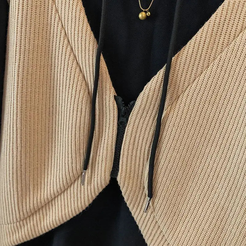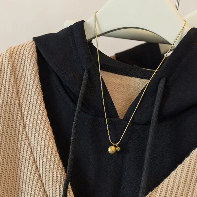 Hooded Fake Two-piece Spliced lange mouwen Sweatshirt Herfst en Winter Slim...