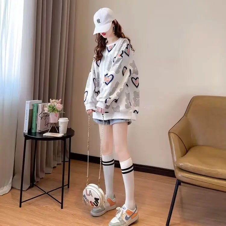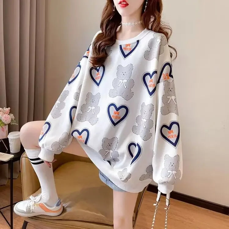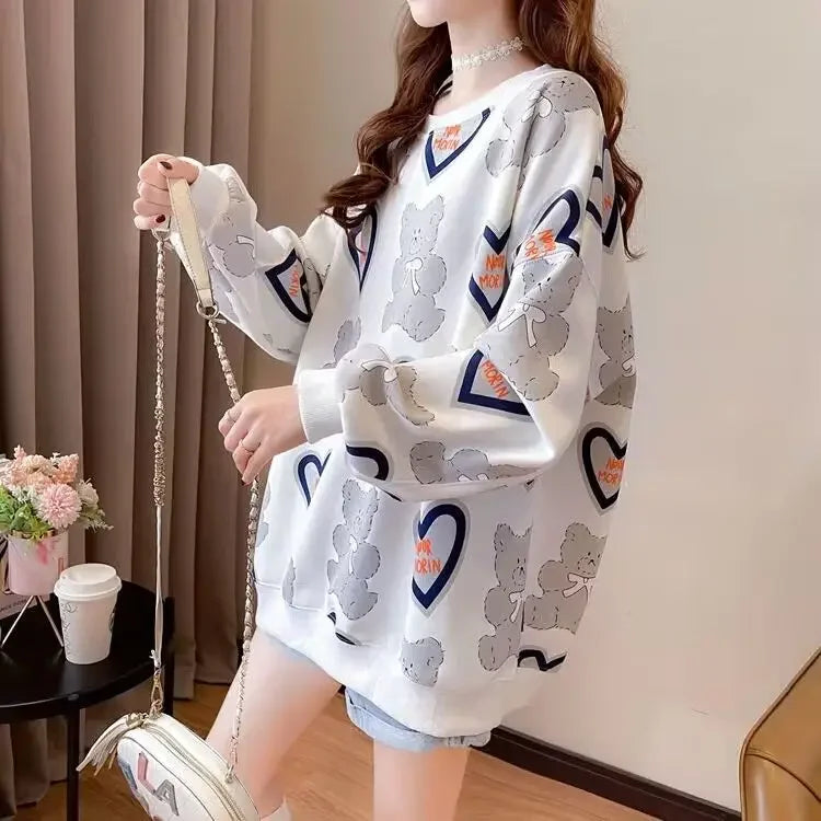 Hoodie Dames Lange Mouw Middellange Ronde Hals Losse en Veelzijdige Western-s...