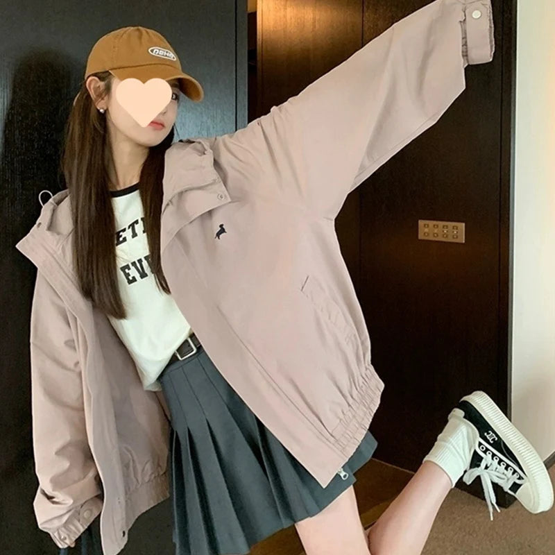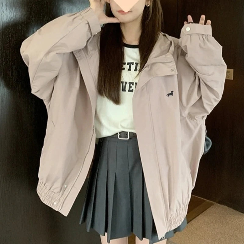 Koreaanse roze ritsjas voor dames, herfst/winter, windjack met omslagkraag