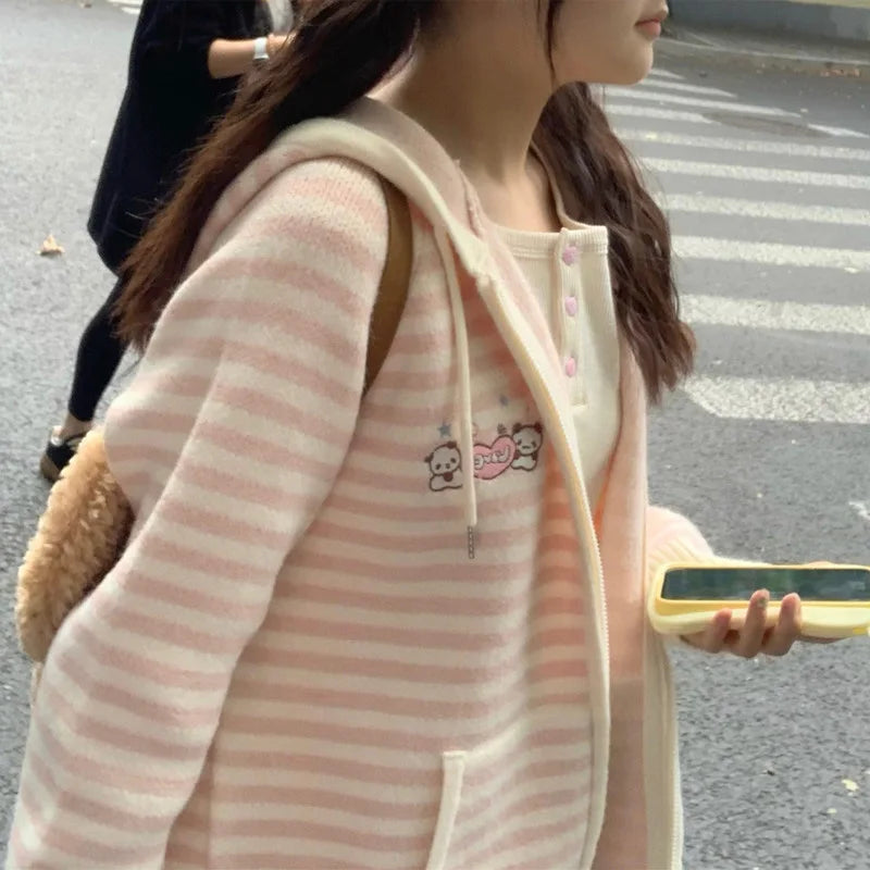 Zoete gemengde kleuren gestreepte cardigan voor dames, herfst/winter, schatti...