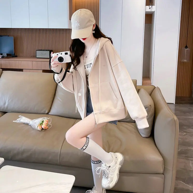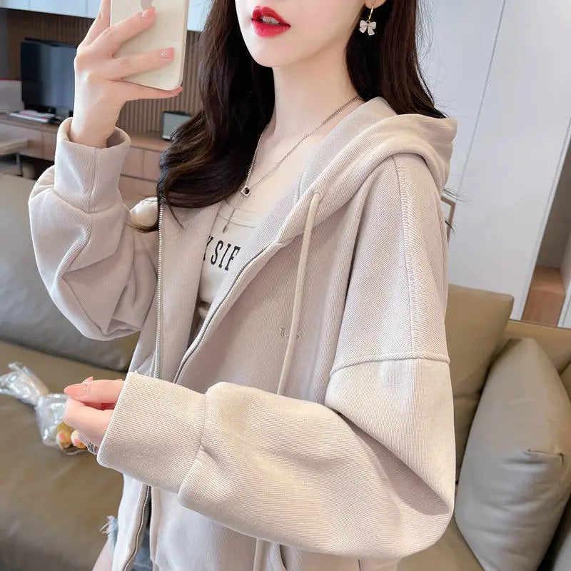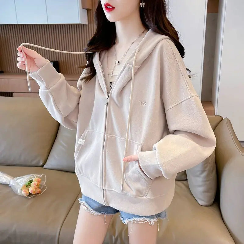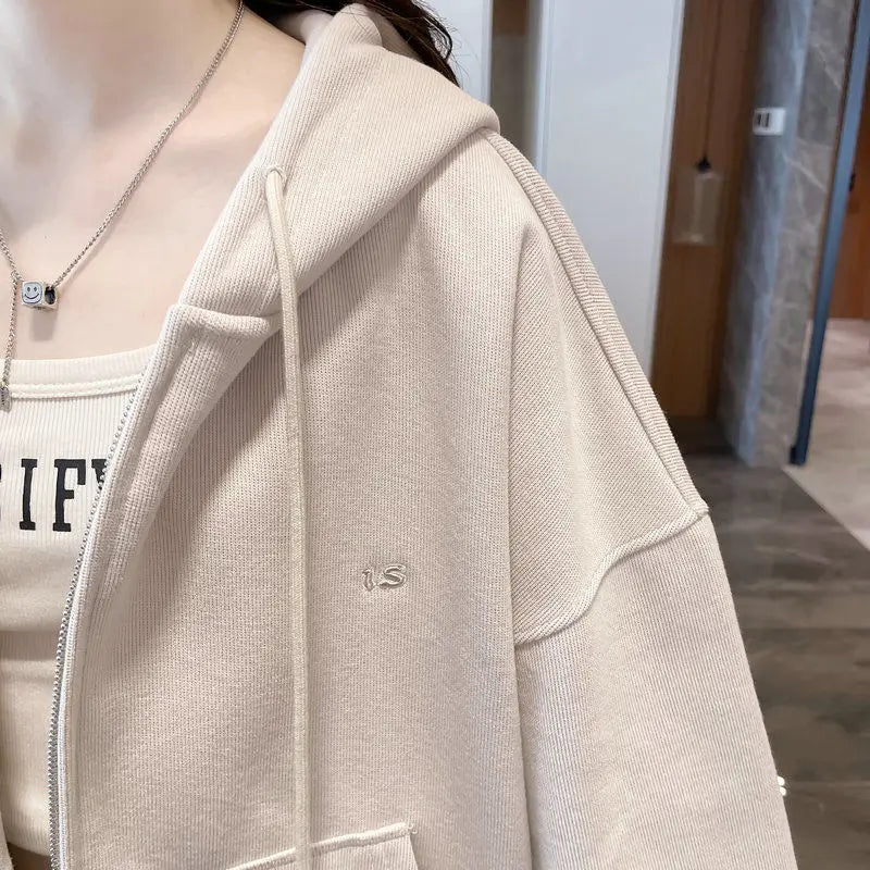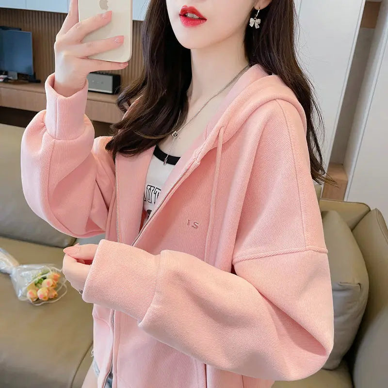 Ritsjack met capuchon, eenvoudig geborduurde letters, losse effen kleur, card...