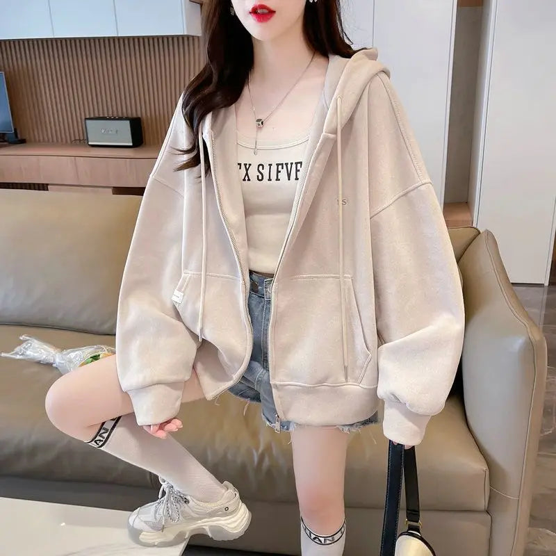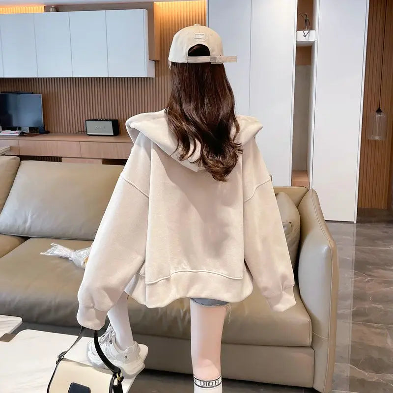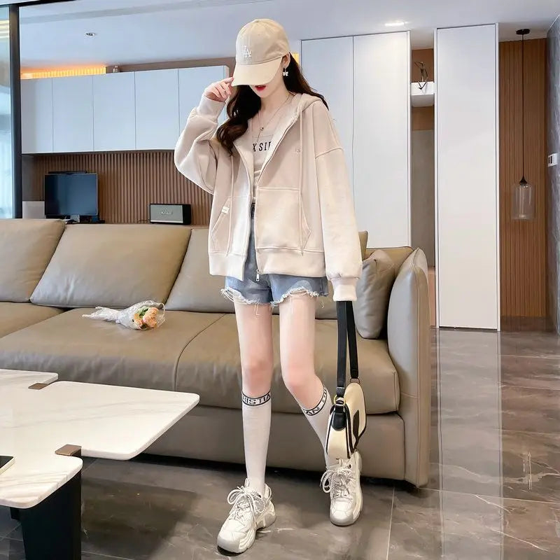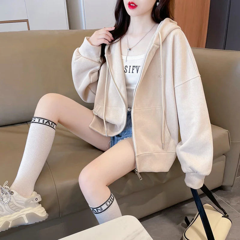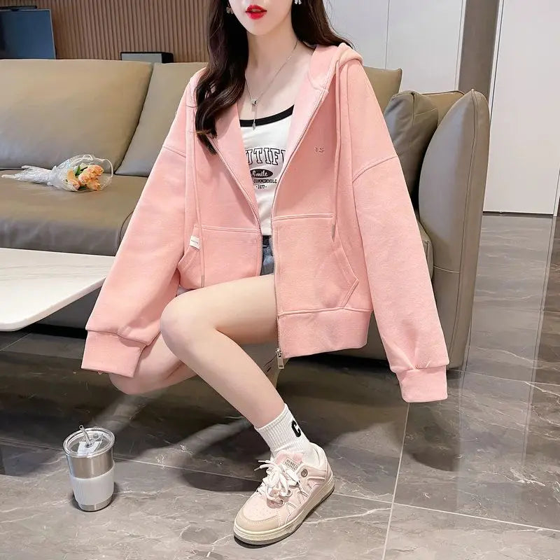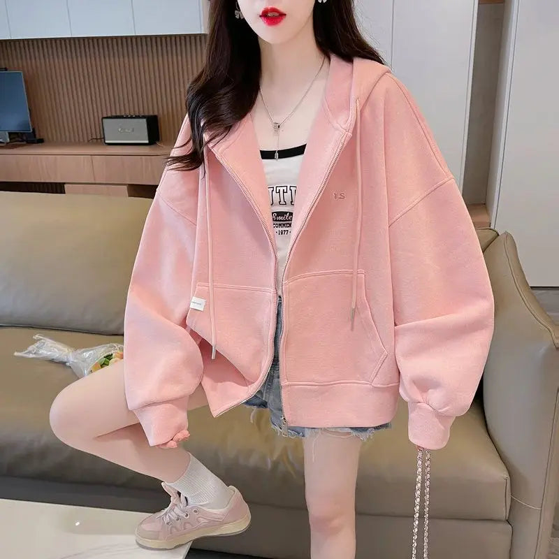 Ritsjack met capuchon, eenvoudig geborduurde letters, losse effen kleur, card...