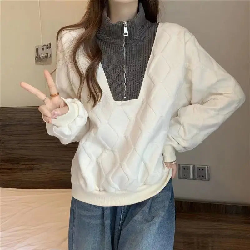 Driedimensionale sweatshirt met rits voor dames, herfst- en wintertop