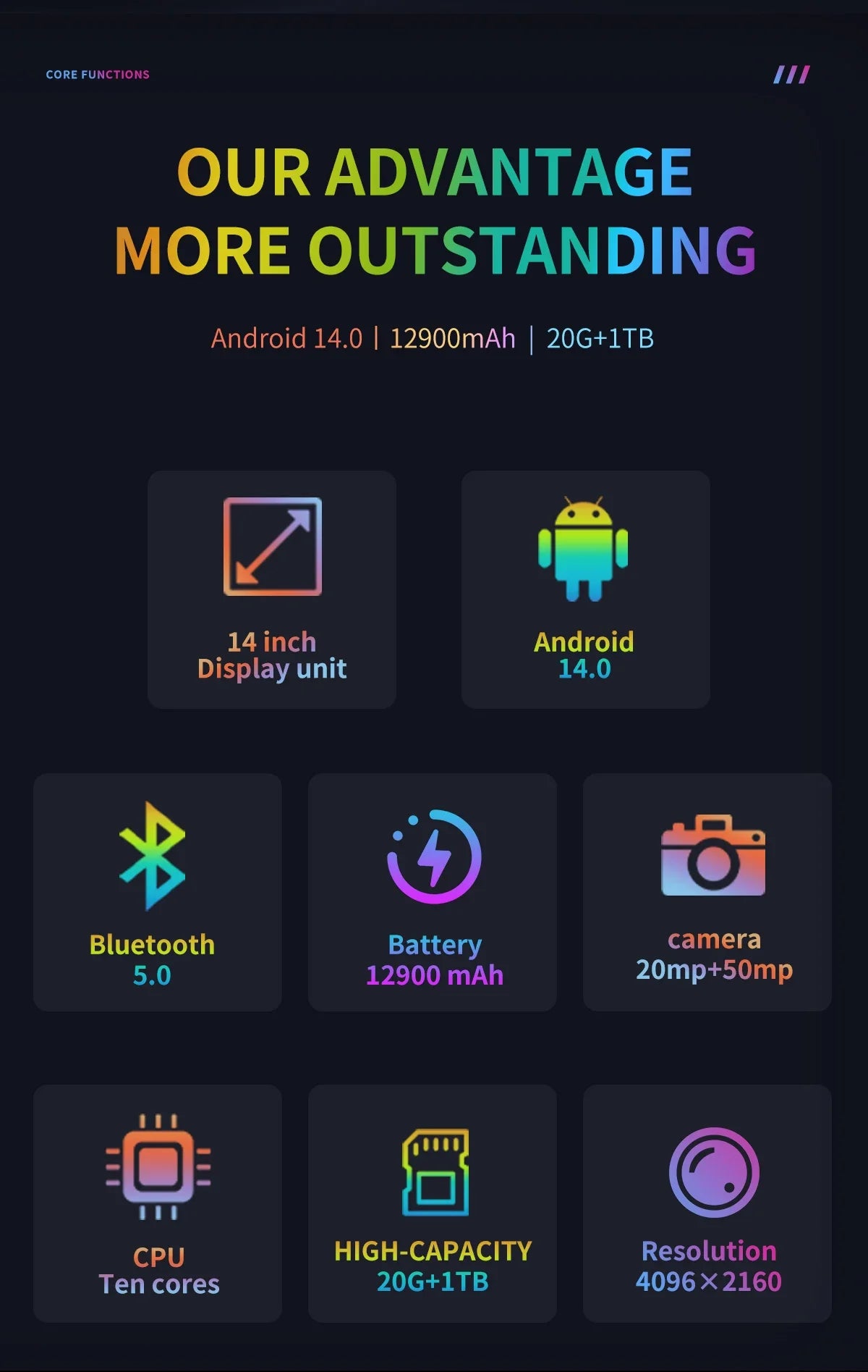 14 inch Nieuwe Tablet 1TB Bluetooth-toetsenbord Android14 Netwerk 5K HD Tablet 5G+Wifi 12900 mAh 10 Core