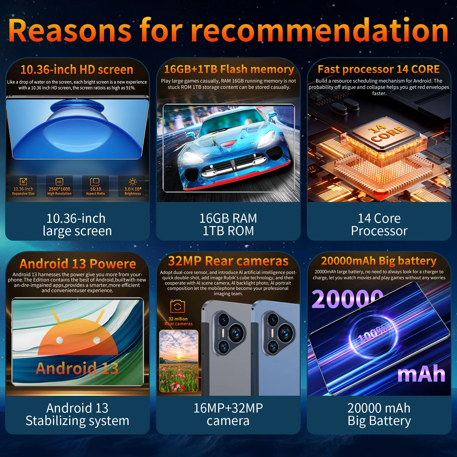 Originele nieuwe P70 Pro-tablet uit 2025, 10,36 inch, Android 13 Snapdragon 8gen2 Global, 16 GB + 1024 GB...