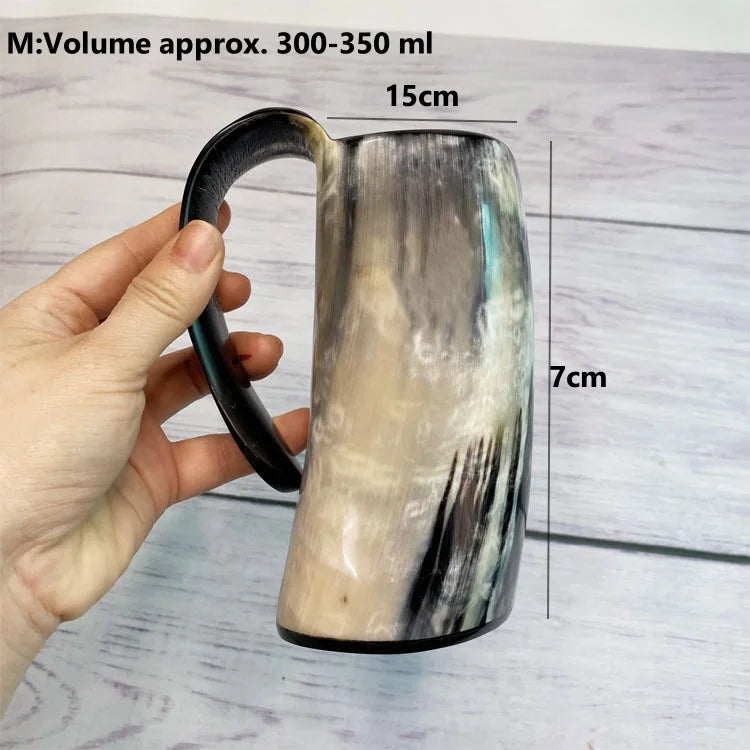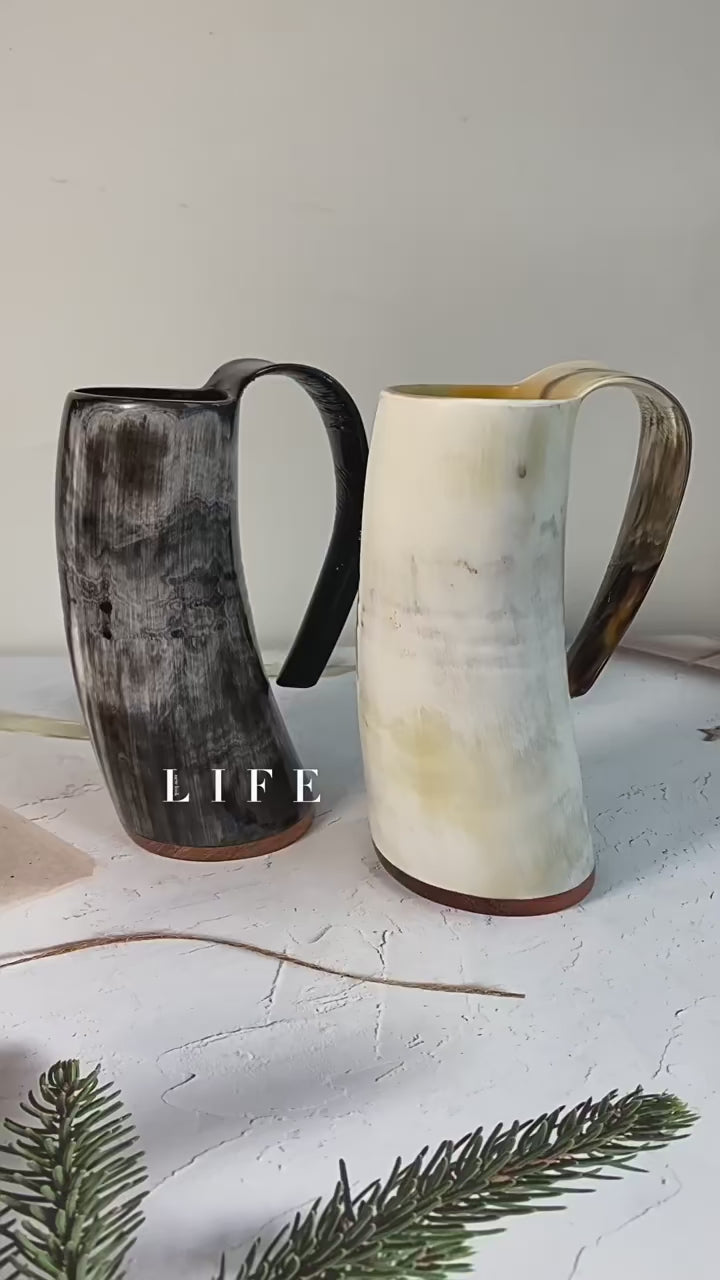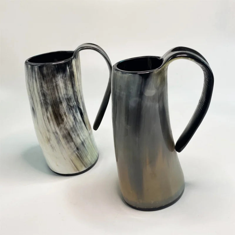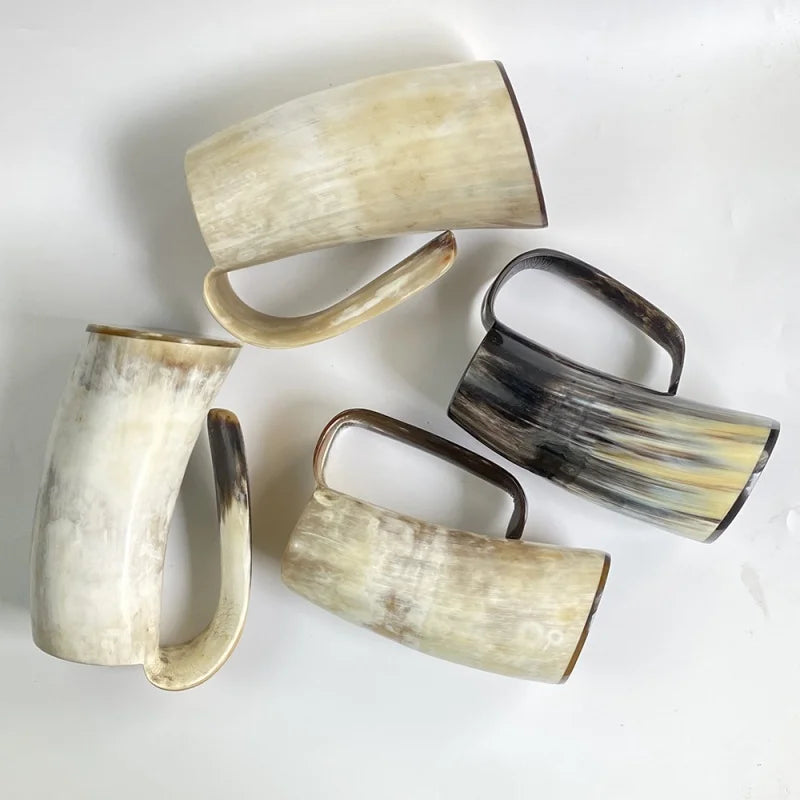 Elke hoornen mok is een uniek kunstwerk: al onze hoornen mokken worden met de hand gemaakt, terwijl we luisteren naar lofzangen op Thor. Elk van onze hoornen mokken is 100% uniek in kleur en vorm en heeft een strakke, natuurlijke afwerking voor maximale authenticiteit; geen twee zijn hetzelfde! Dit betekent dat u met uw aankoop een hoornen mok krijgt die u echt uw eigen kunt noemen en waar u trots op kunt zijn!