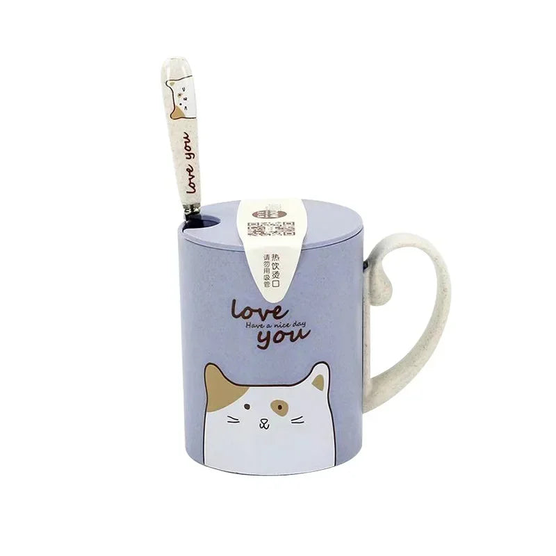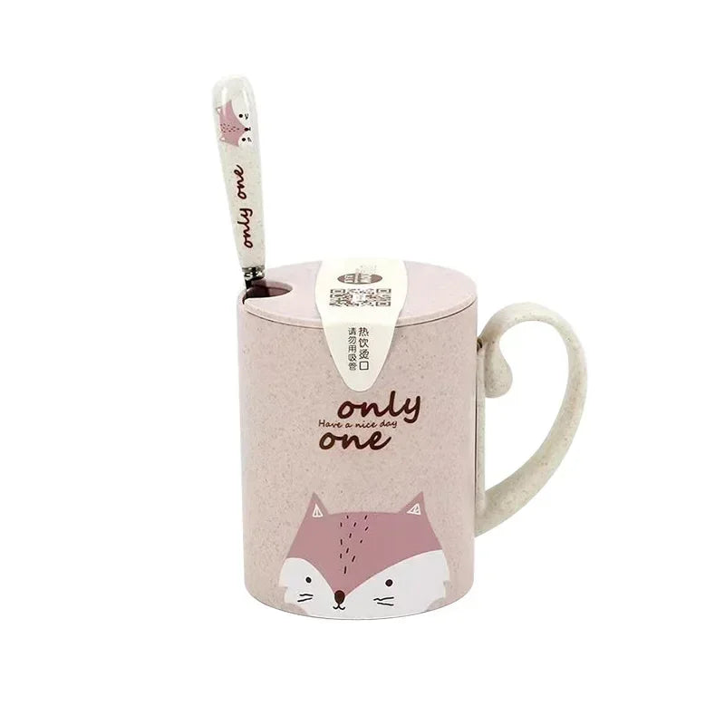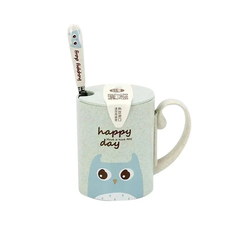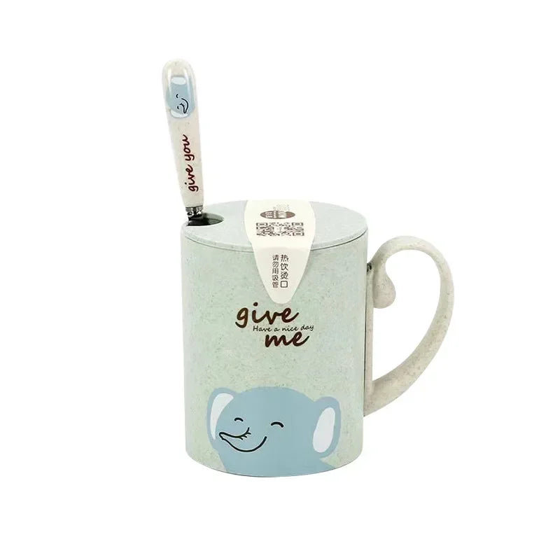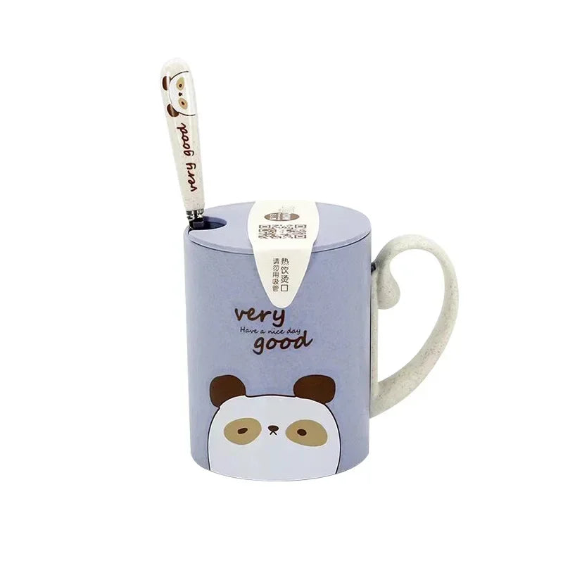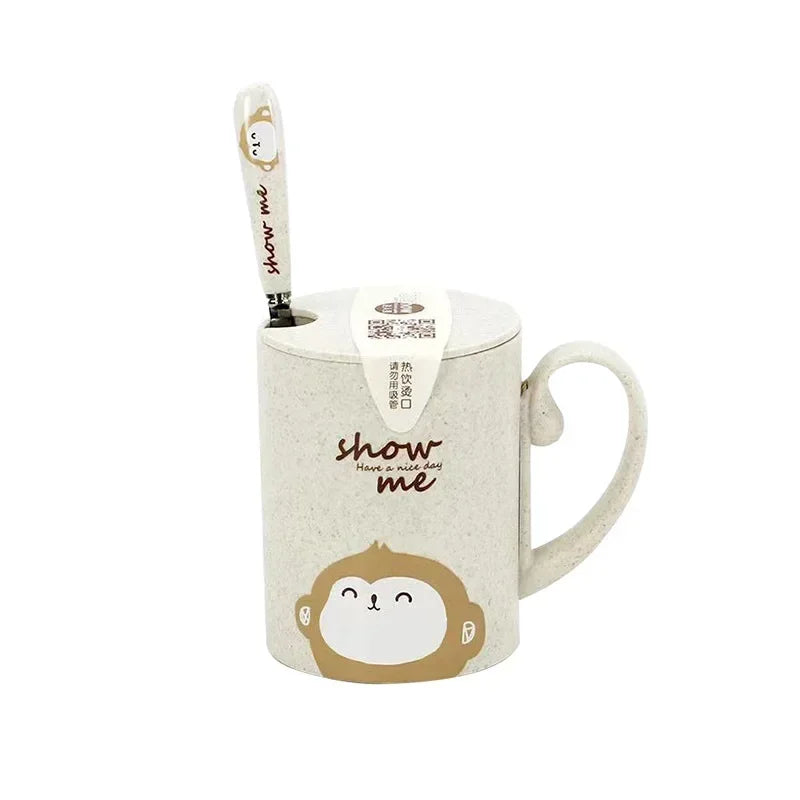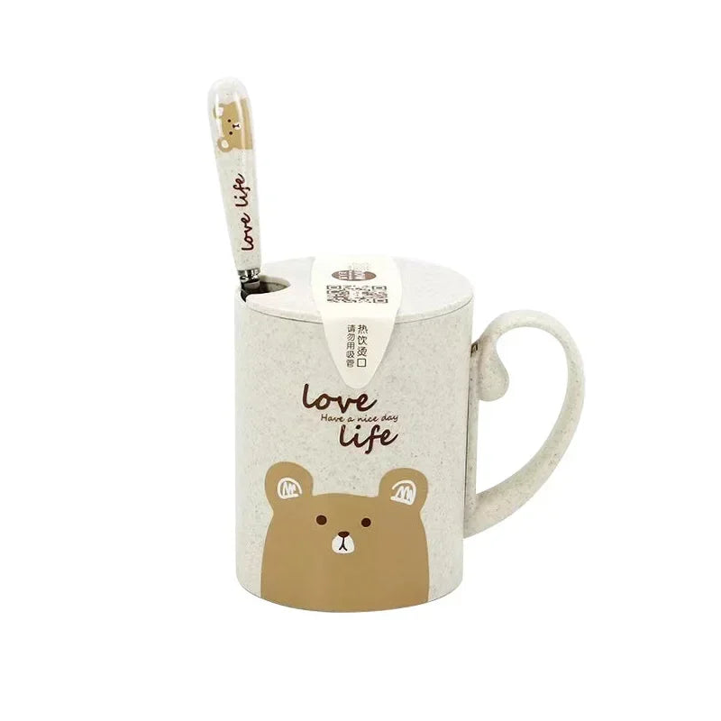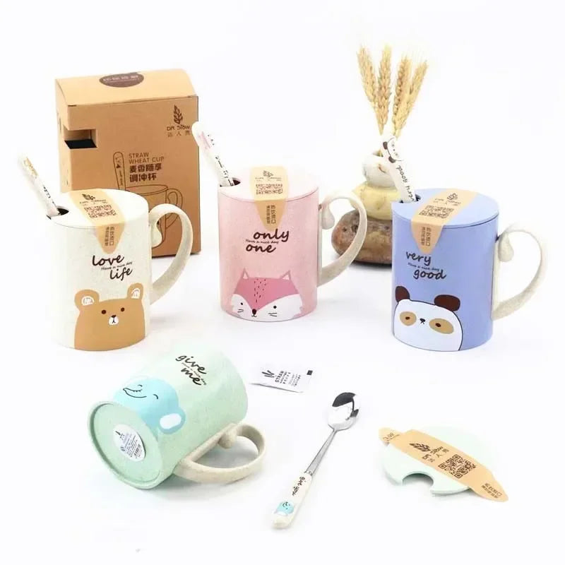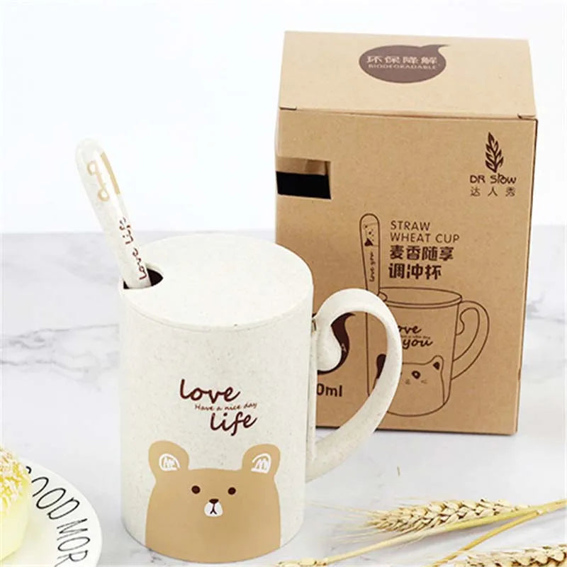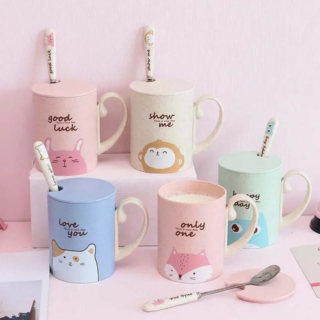 Hot Sale 450ml Cartoon Tarwe Dier Mok met Deksel Lepel Melk Koffie Mok voor Thee Melk Reisbeker Grote Capaciteit Kinderbeker Leuk Cadeau