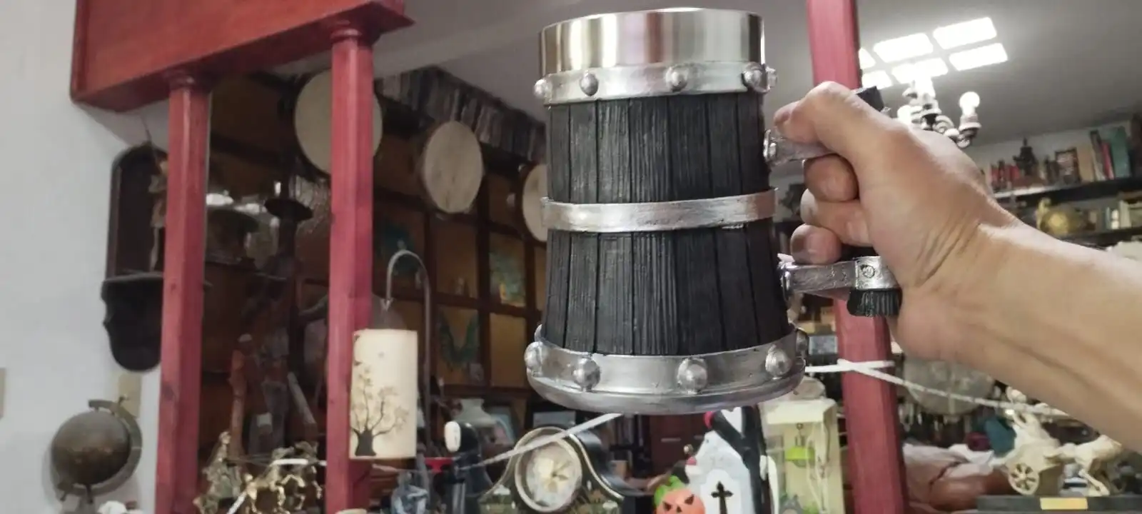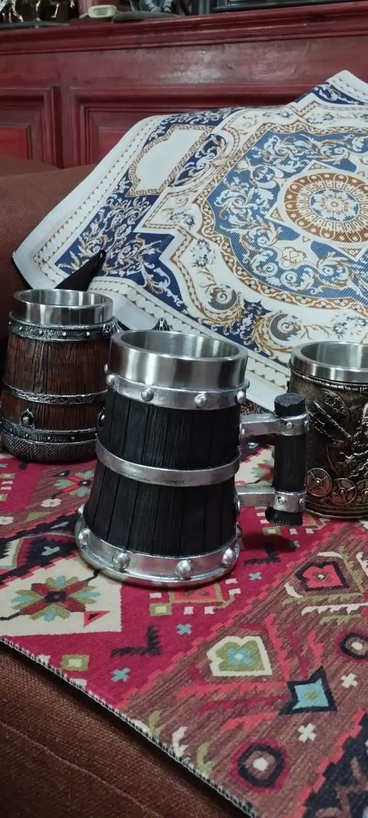 Deze mok is gemaakt van hoogwaardige materialen en heeft een dubbele wand, zodat je drankjes langer warm of koud blijven. De buitenkant van de mok is voorzien van verfijnde details die de Viking-sfeer echt benadrukken, zoals het houtdesign en de metalen accenten.