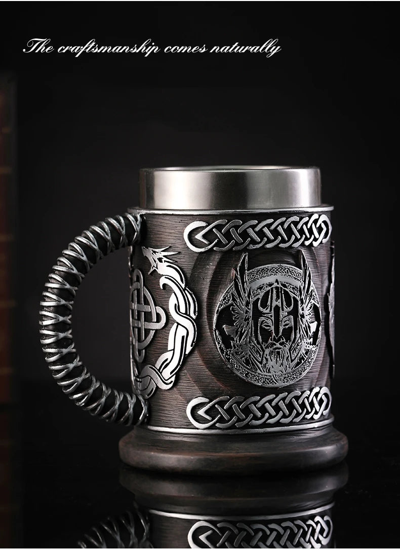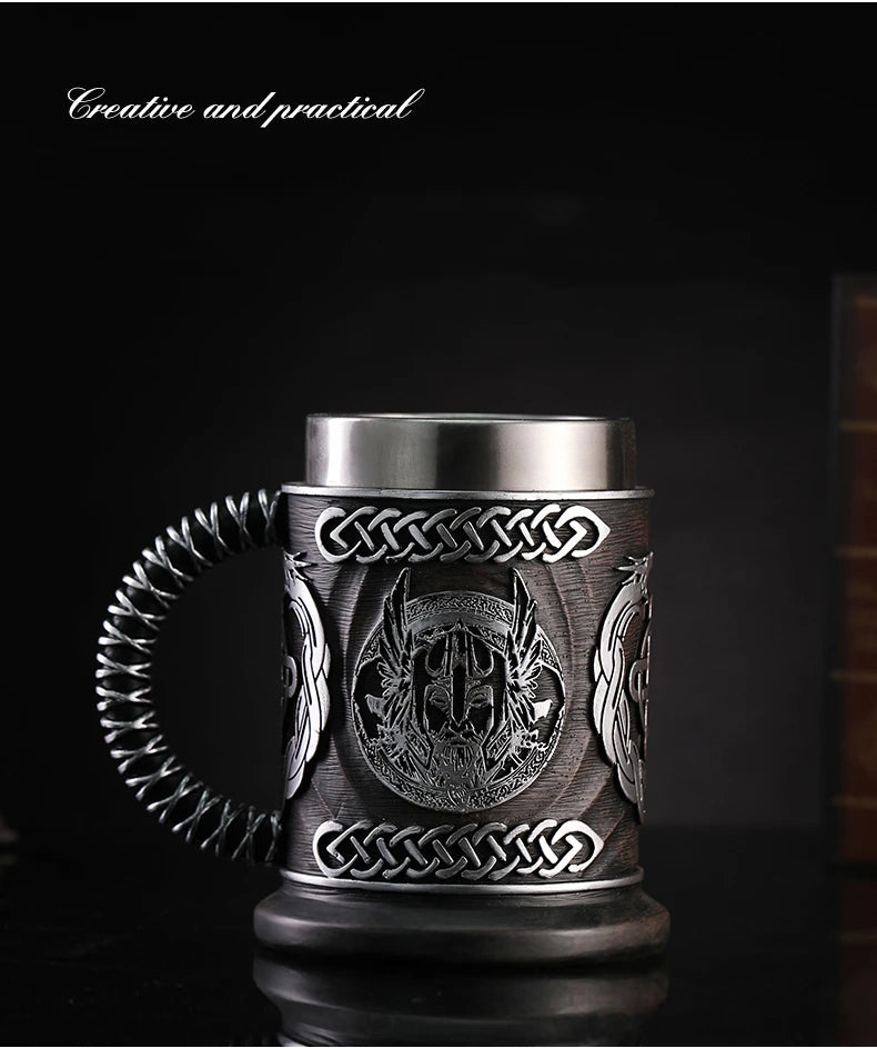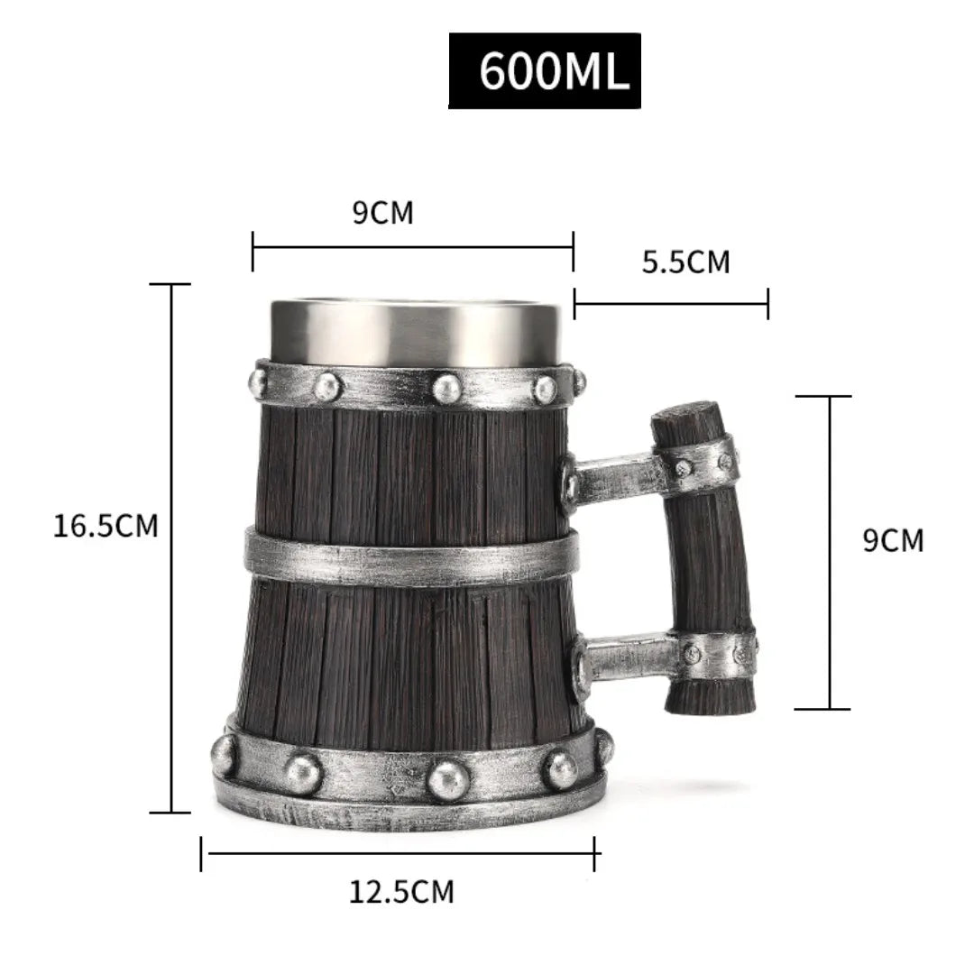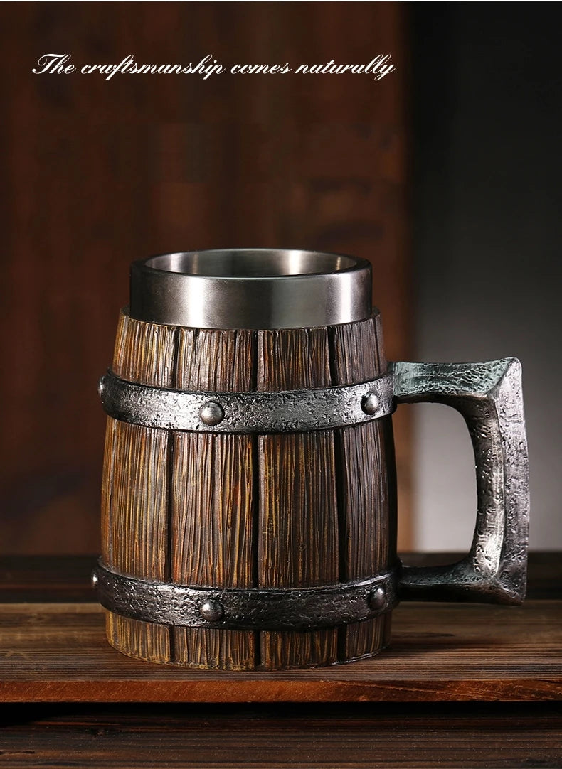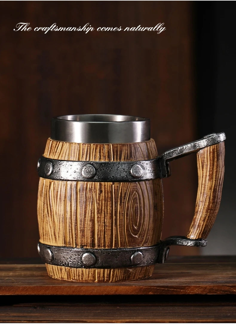 Viking houten stijl bierpul 3D hars roestvrij staal koffiekopje wijnglas metalen dubbelwandige mok bierka...