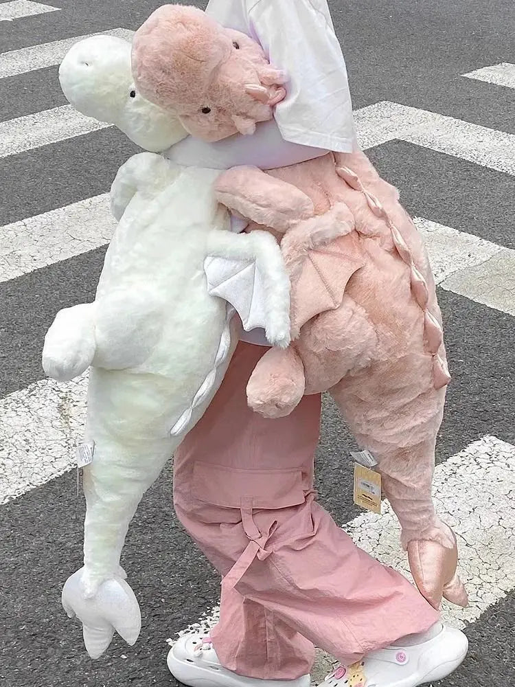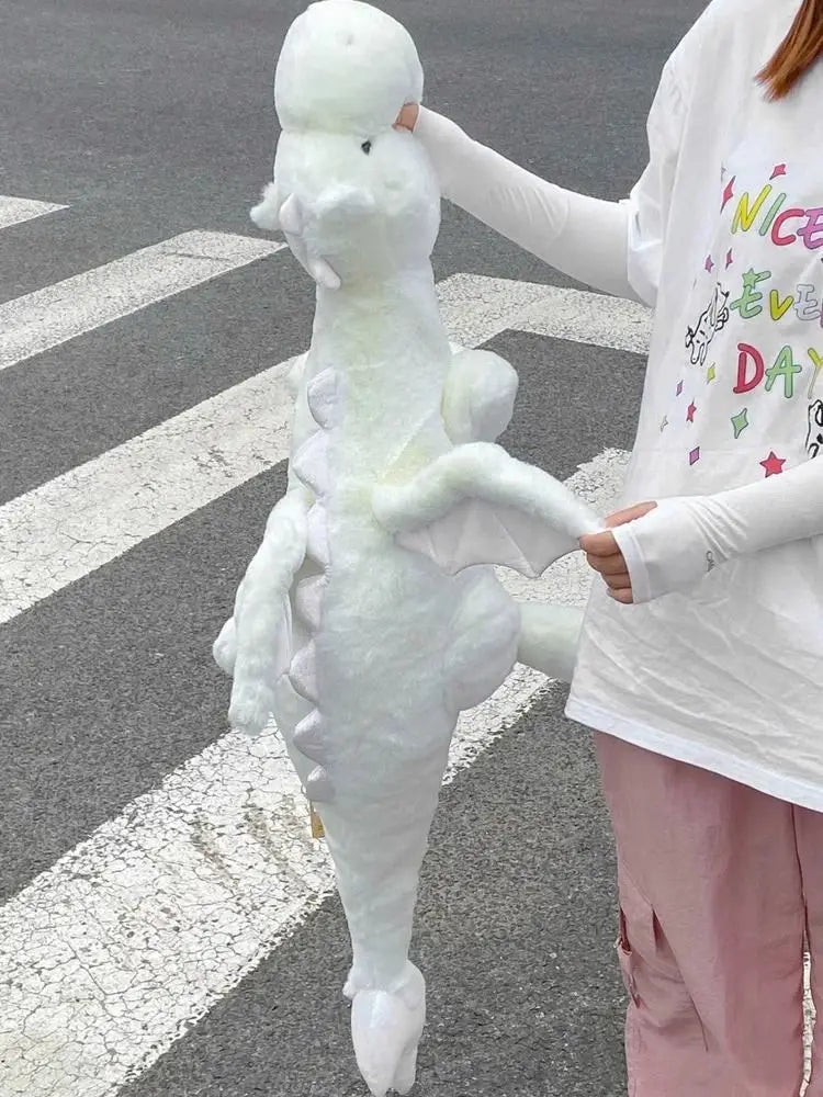 150cm gigantische witte draak pluchen speelgoed met eenhoornhoorn vliegende pterosauriër dinosaurus kusse...