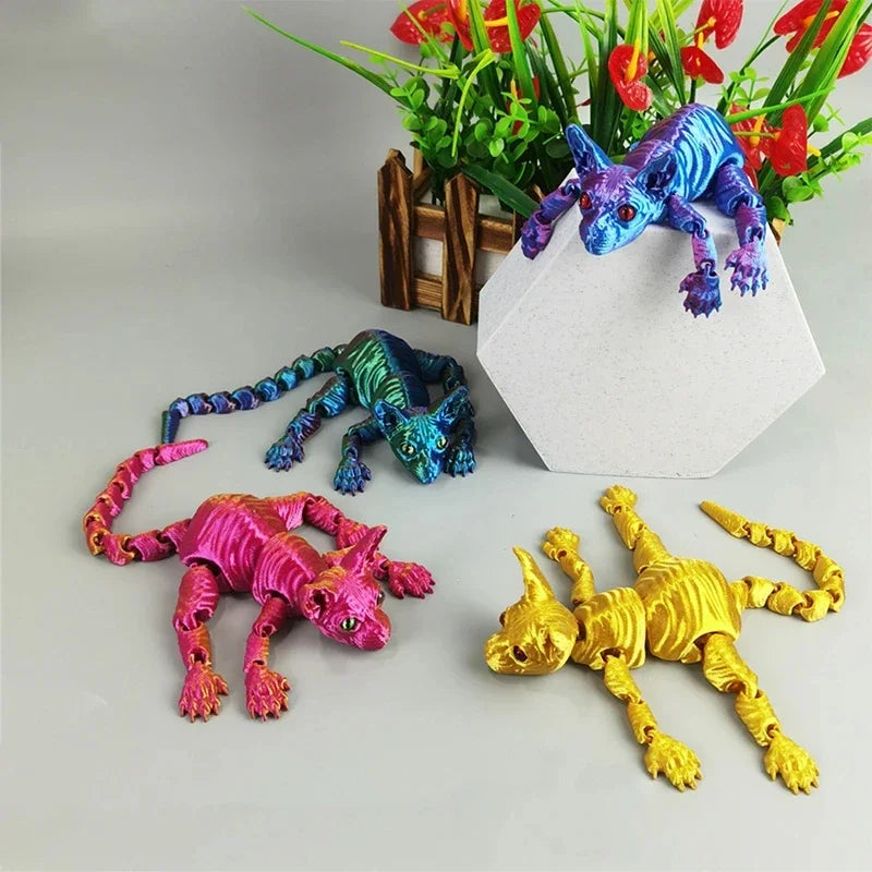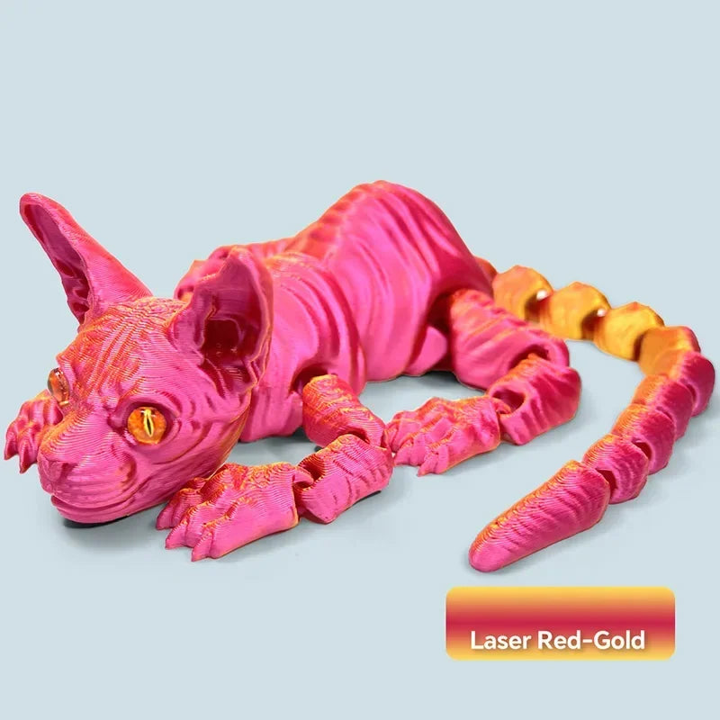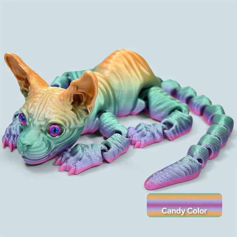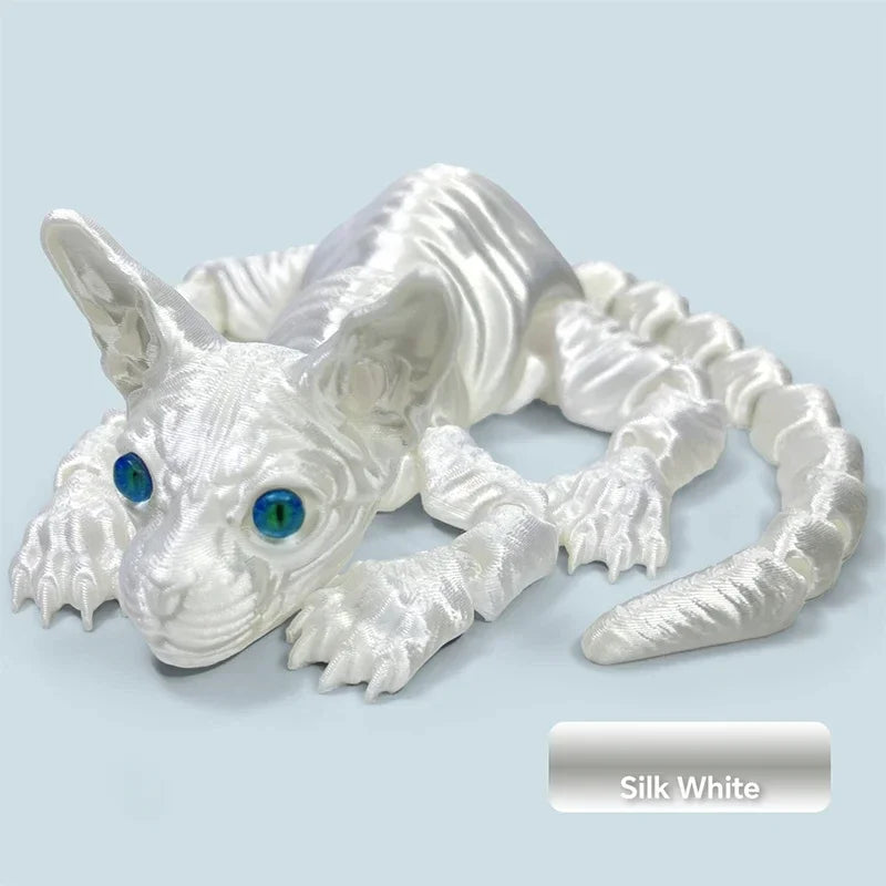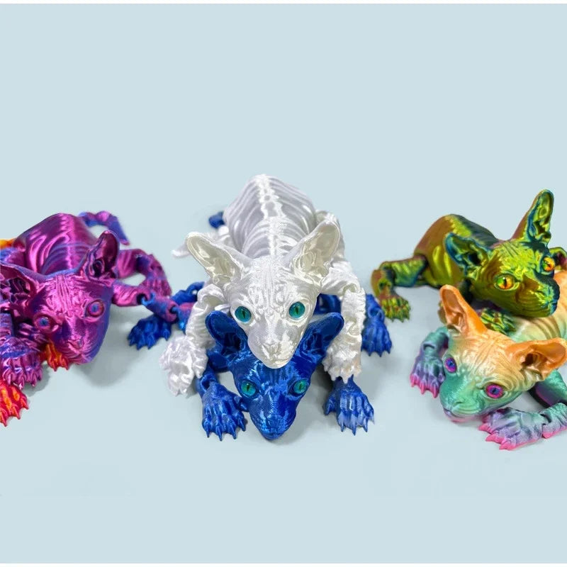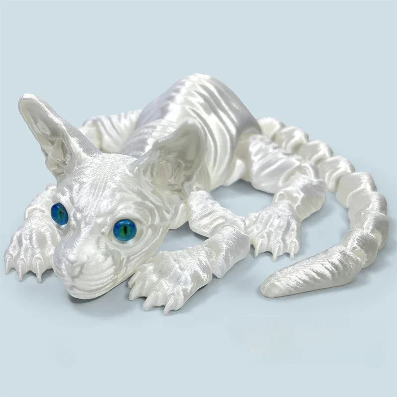 3D-geprint realistisch haarloos sphynxkattenbeeldje – schattig beweegbaar fidget-speeltje, perfect cadeau...