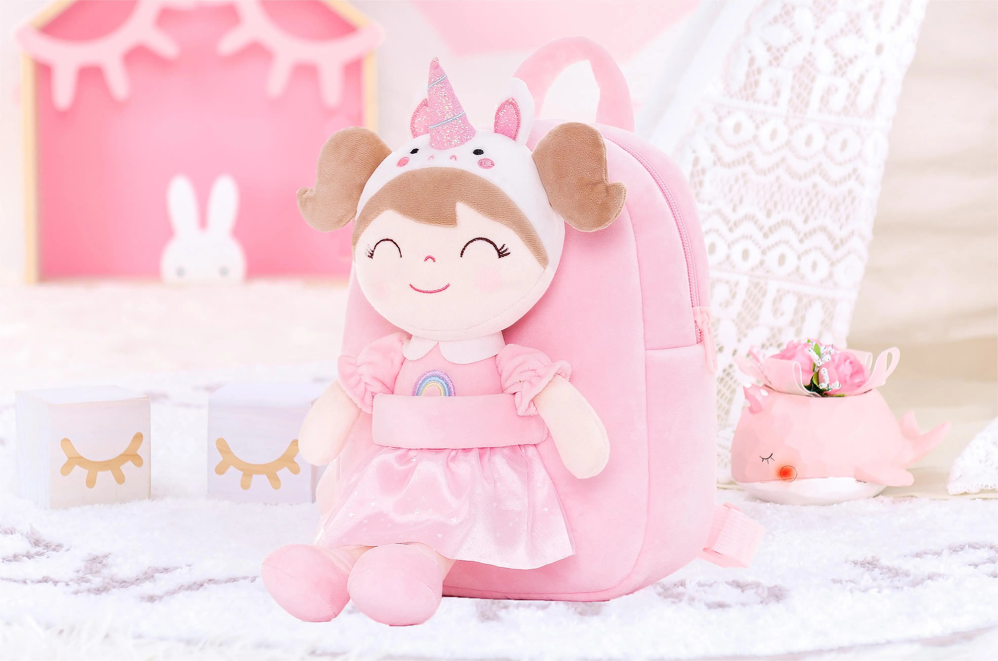 Gloveleya Pluche Rugzak Baby Meisjes Rugzakken Peutertassen Speelgoed Gevulde Poppen