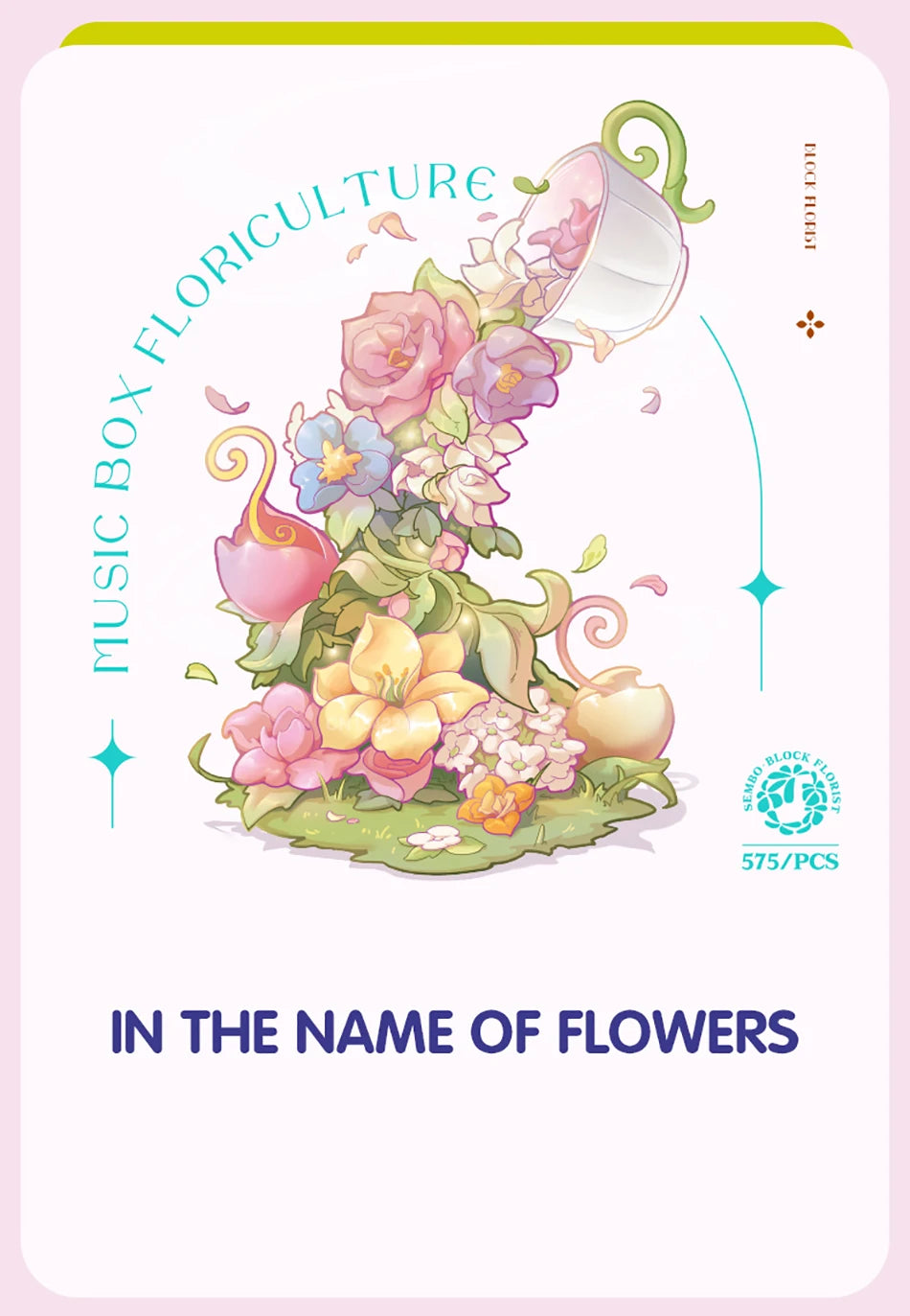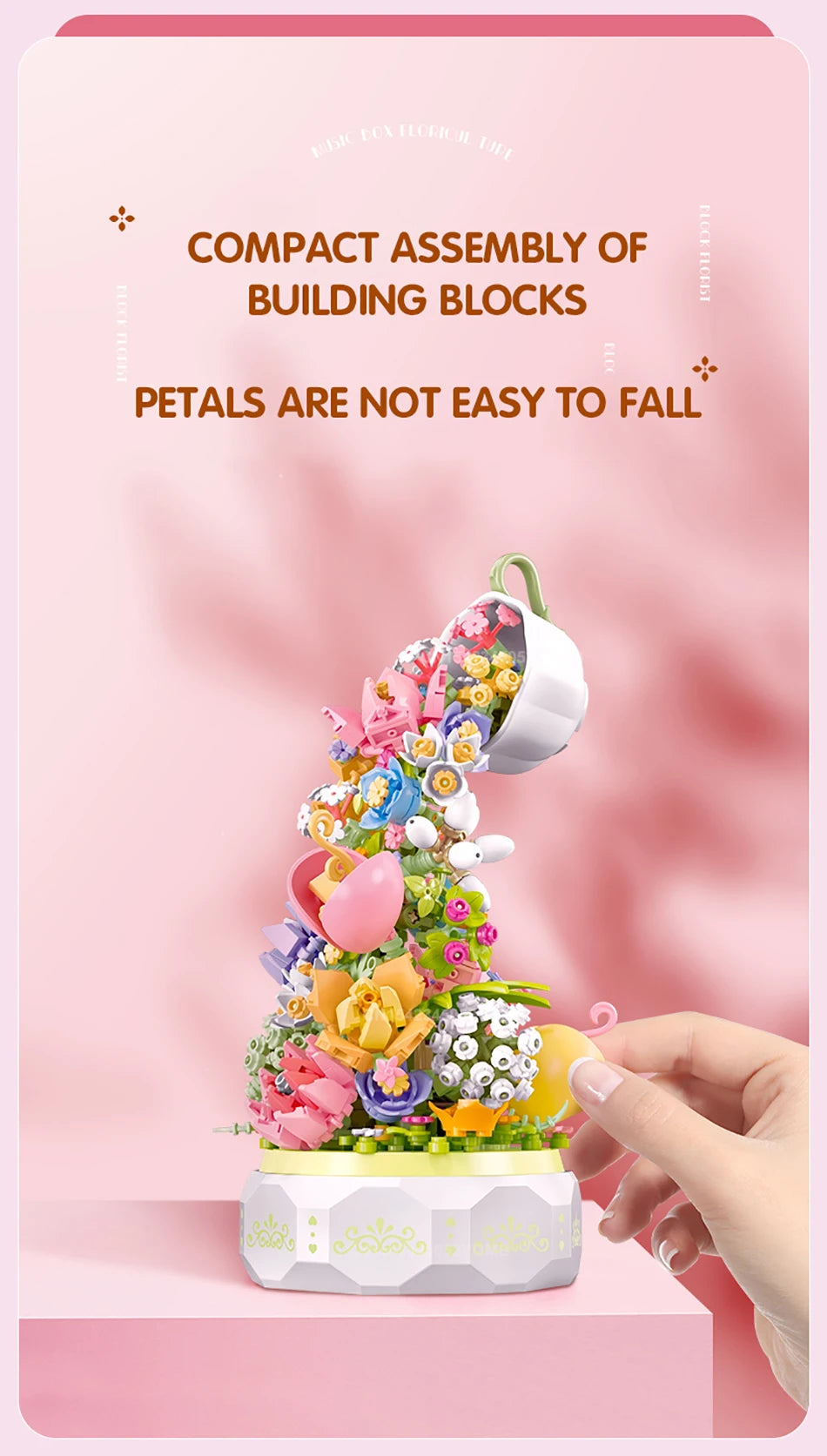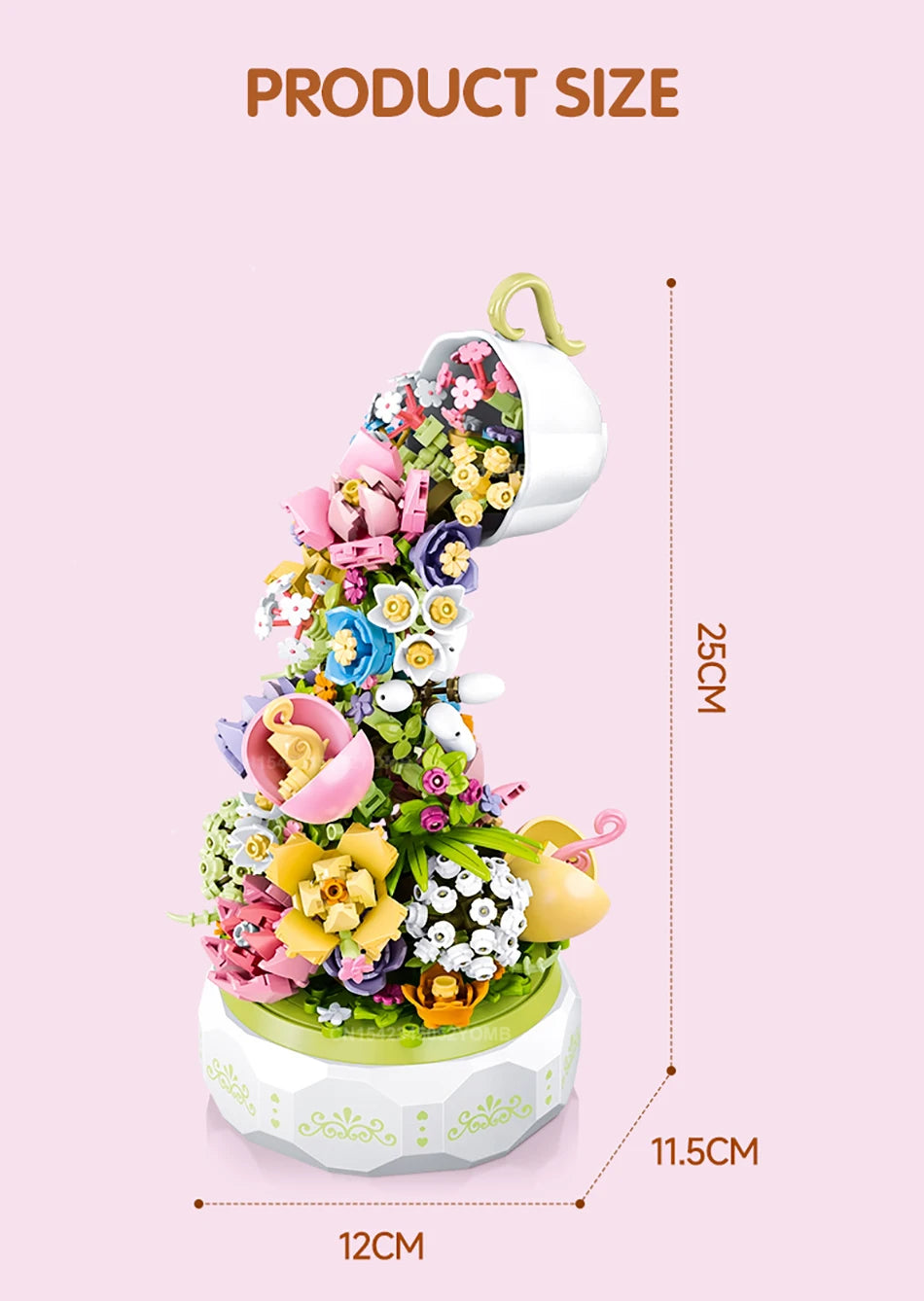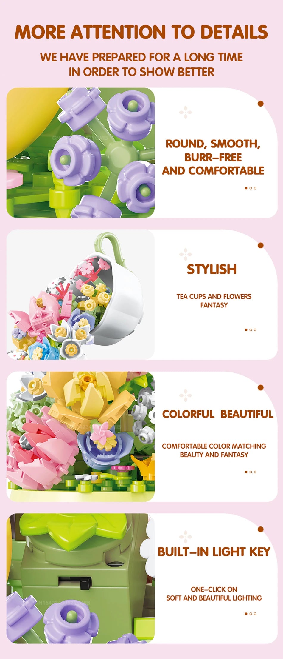 HUIQIBAO 575PCS Romantische Bloem Verlichting Muziekdoos Bouwstenen Woondecoratie Anime Creatief Speelgoed Kind Volwassenen Kerstcadeaus