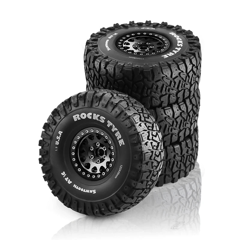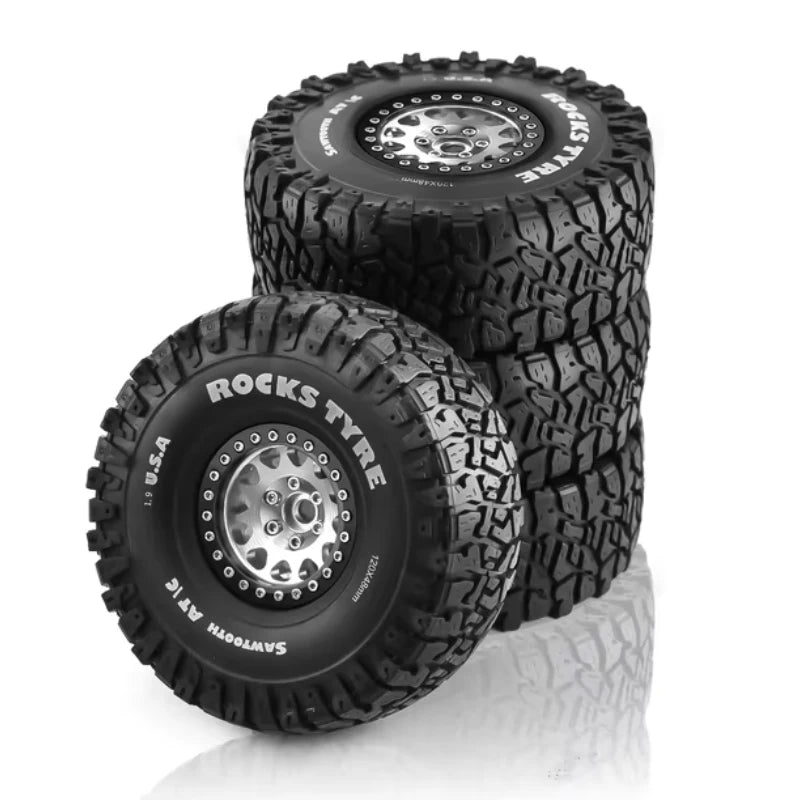 RC Auto 4PCS 1.9 Inch Beadlock Velgen & Rubberen Band voor 1/10 RC Rock Crawler Axial SCX10 RR10 AX10...