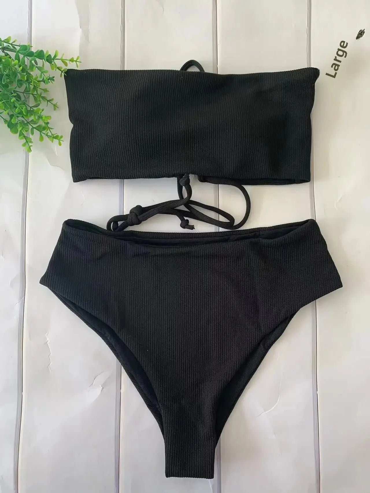 • Modieus ontwerp: deze nieuwe stijl van 2022, een meerkleurige bikini met een tubetop, heeft een trendy splitontwerp en voegt een vleugje sexy toe aan je badkledingcollectie.