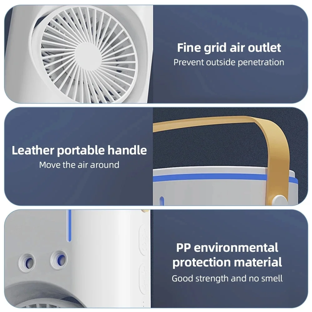 Milieuvriendelijk: Deze luchtkoeler is gemaakt van milieuvriendelijke PP-materialen, is duurzaam, geurloos en gemakkelijk schoon te maken, wat zorgt voor een veilige en milieuvriendelijke koeloplossing