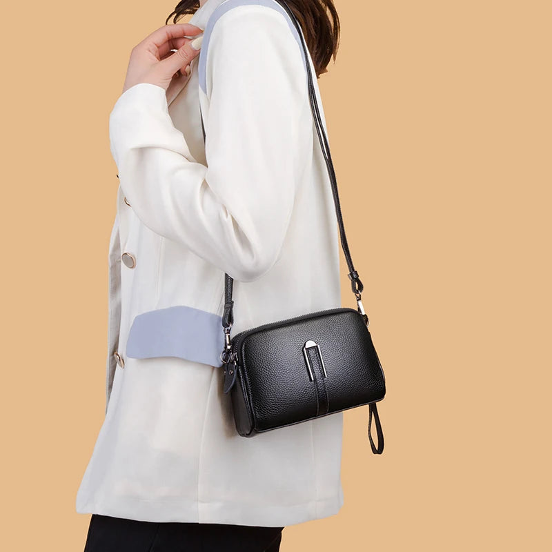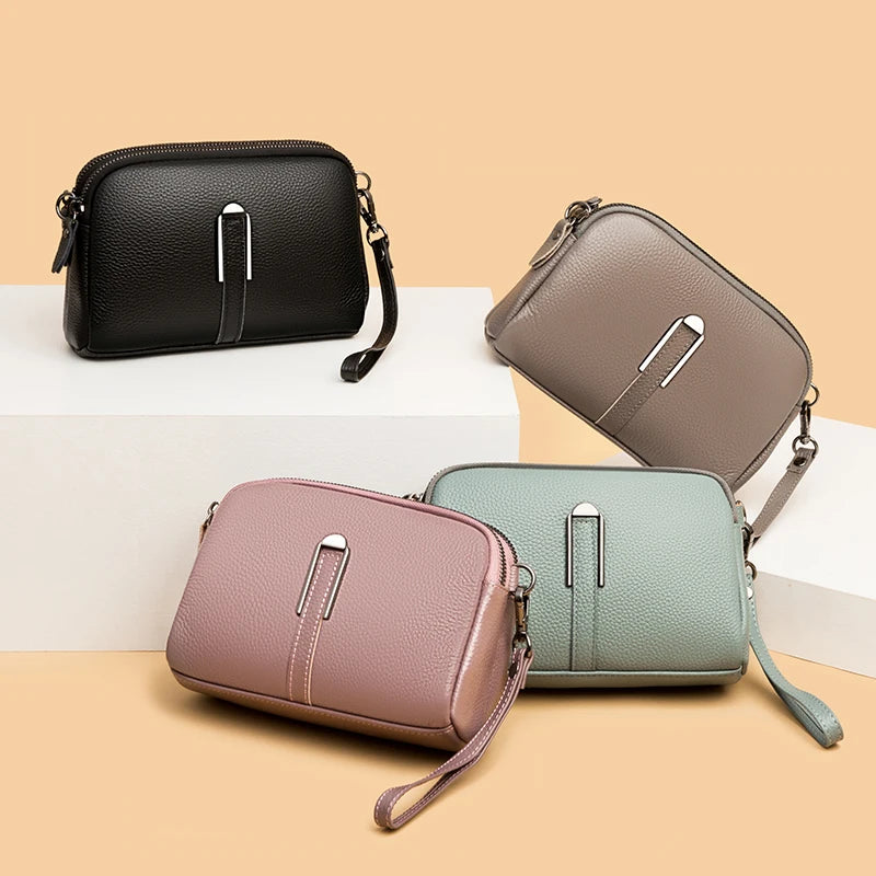 Leren gewatteerde schoudertas voor dames, gitaarband, ritstas, casual mobiel