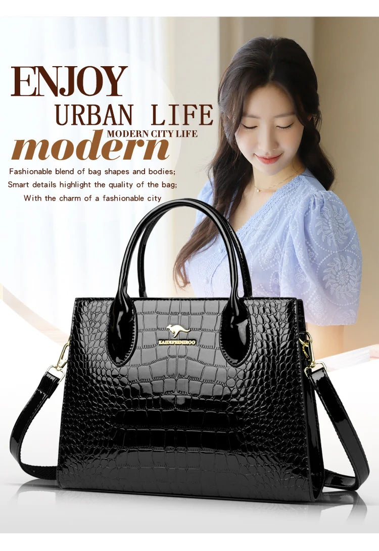 Luxe handtassen van lakleer voor dames met krokodillenpatroon