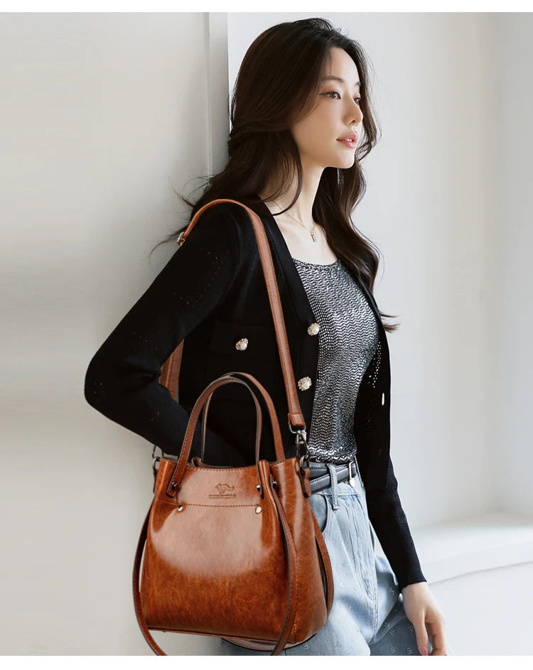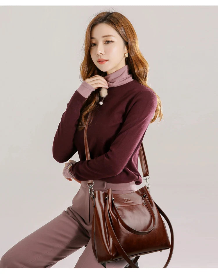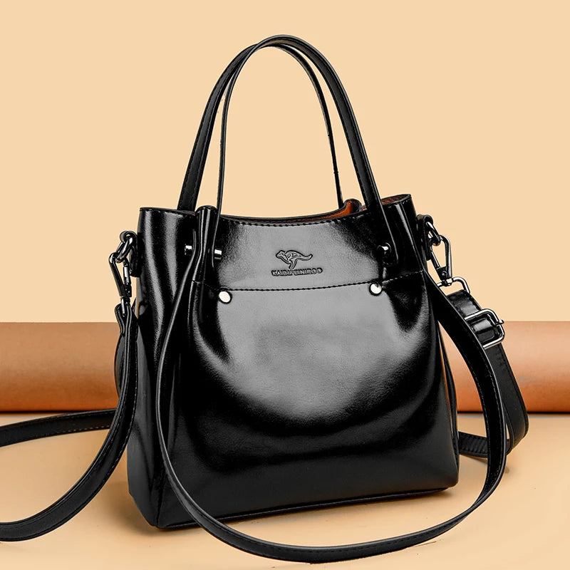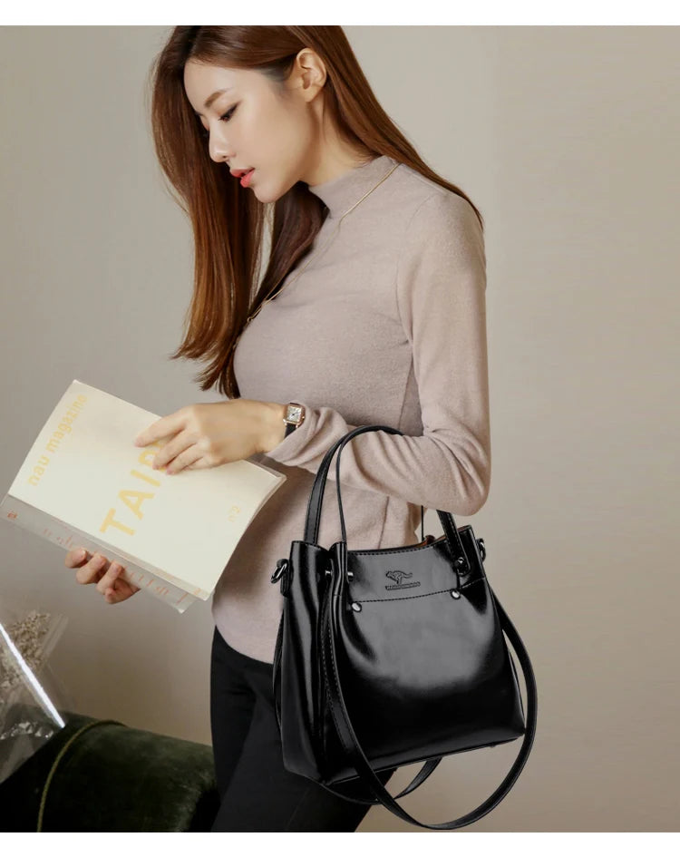 Eenvoudige dames schoudertassen grote capaciteit zwarte handtassen en portemo...
