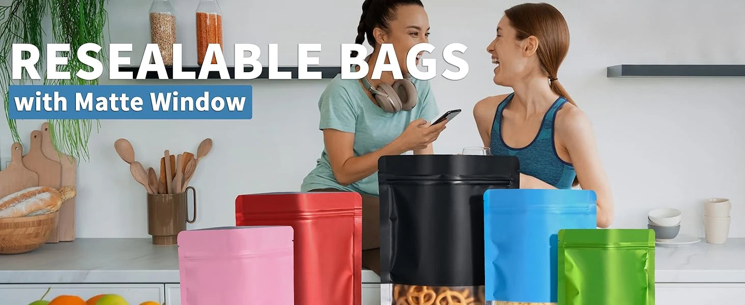 100 stuks geurbestendige zakjes, hersluitbare zakjes met mat venster, folieza...