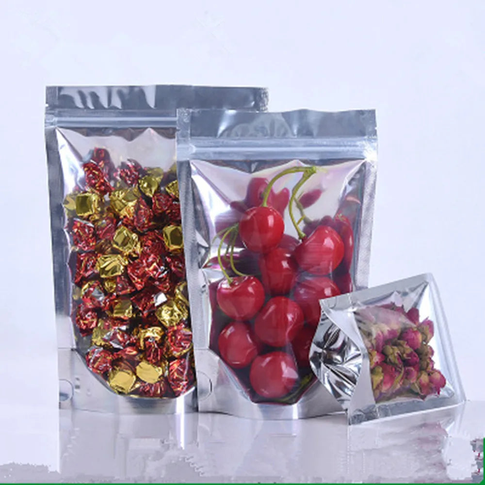 100 stuks Doypack doorzichtige aluminiumfolie Zip Lock verpakkingszakken zilv...