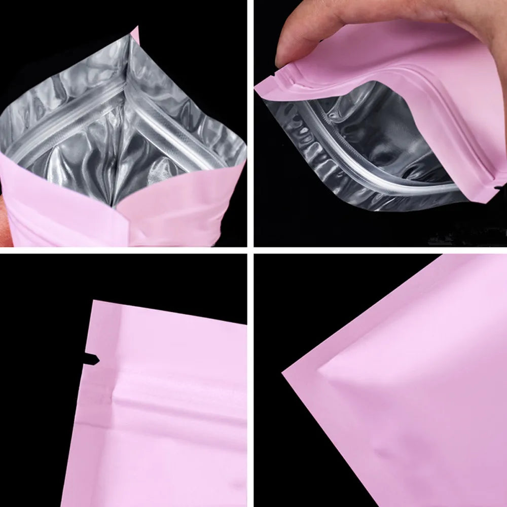 100 stuks matte roze aluminiumfolie ritssluiting voedsel geschenk opbergzak r...