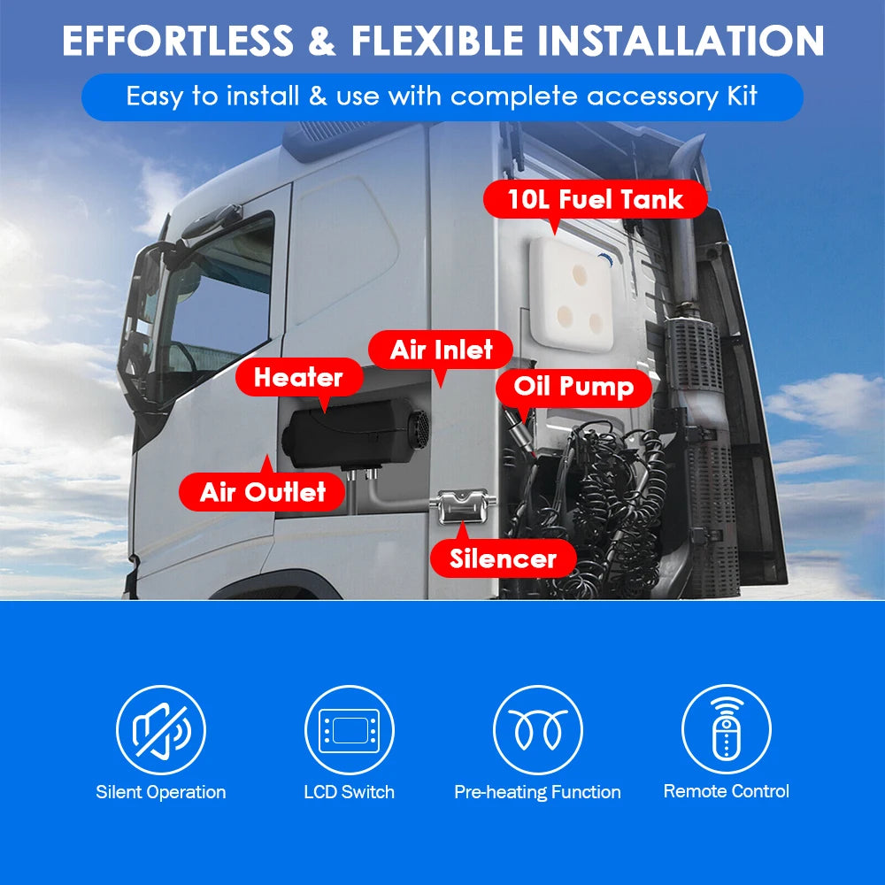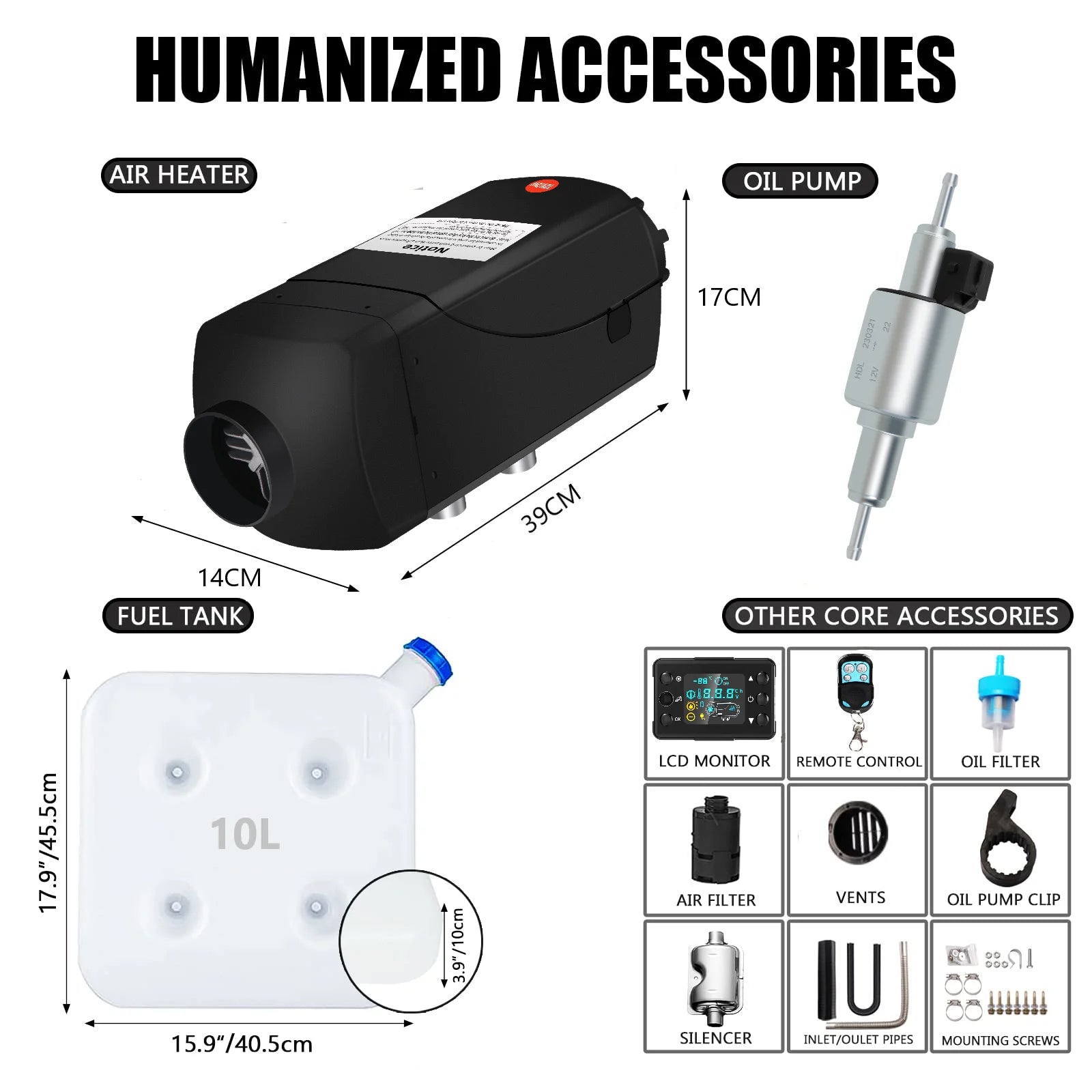 12 24V Lucht Diesel Verwarming 2,5 8KW Parkeerverwarming met CO-alarm Bluetoo...