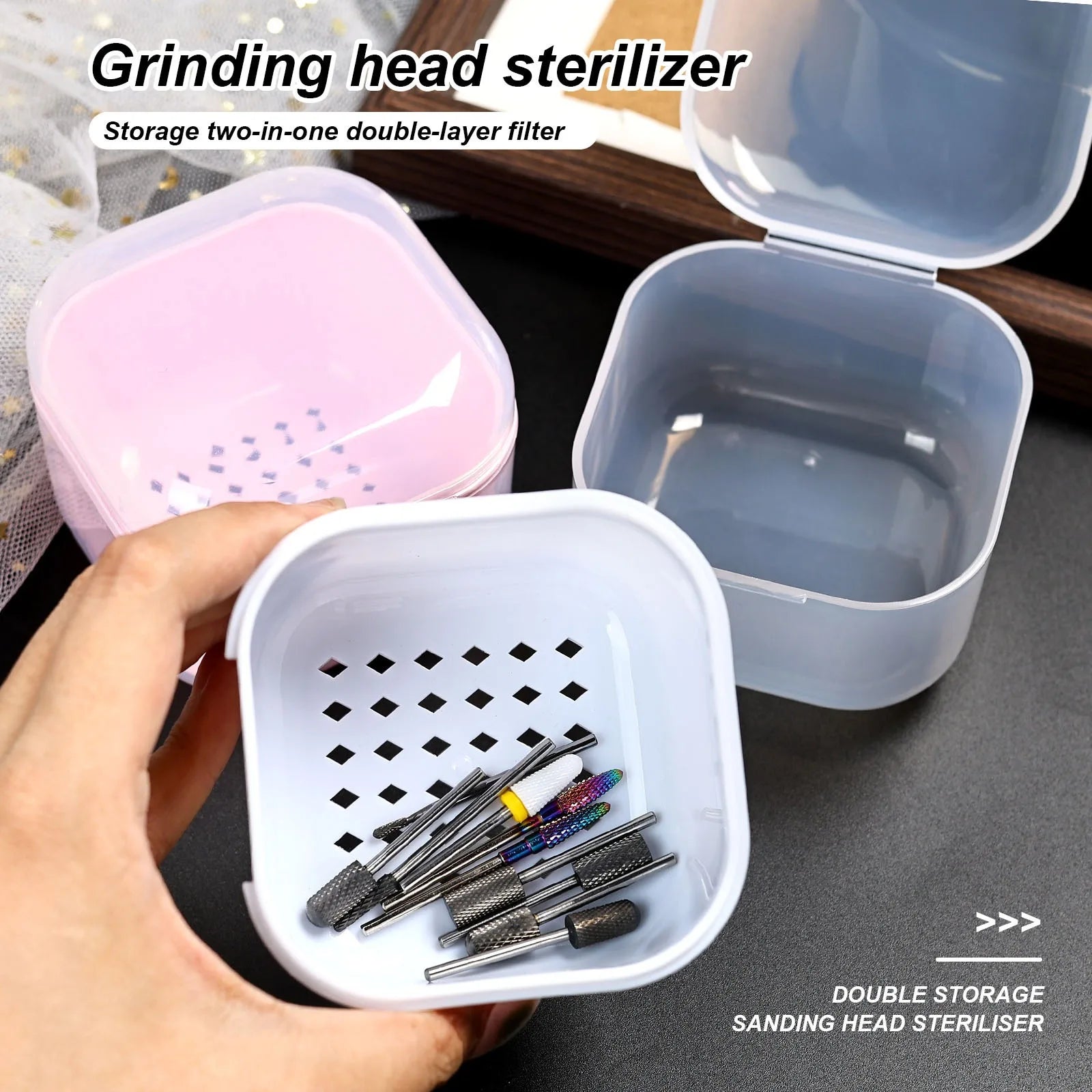 1PC Vierkante Dubbellaags Filterende Nail Art Boorbits Reinigingsdoos Nagelbi...