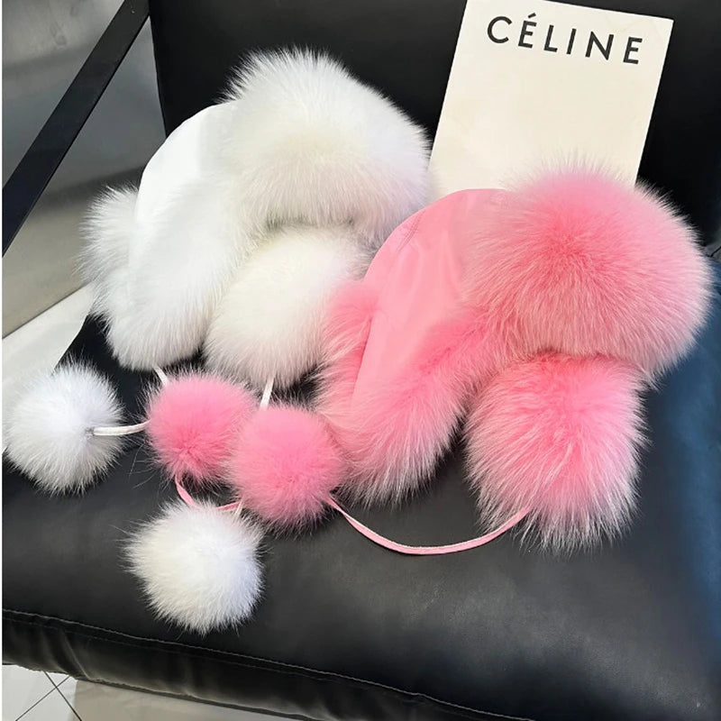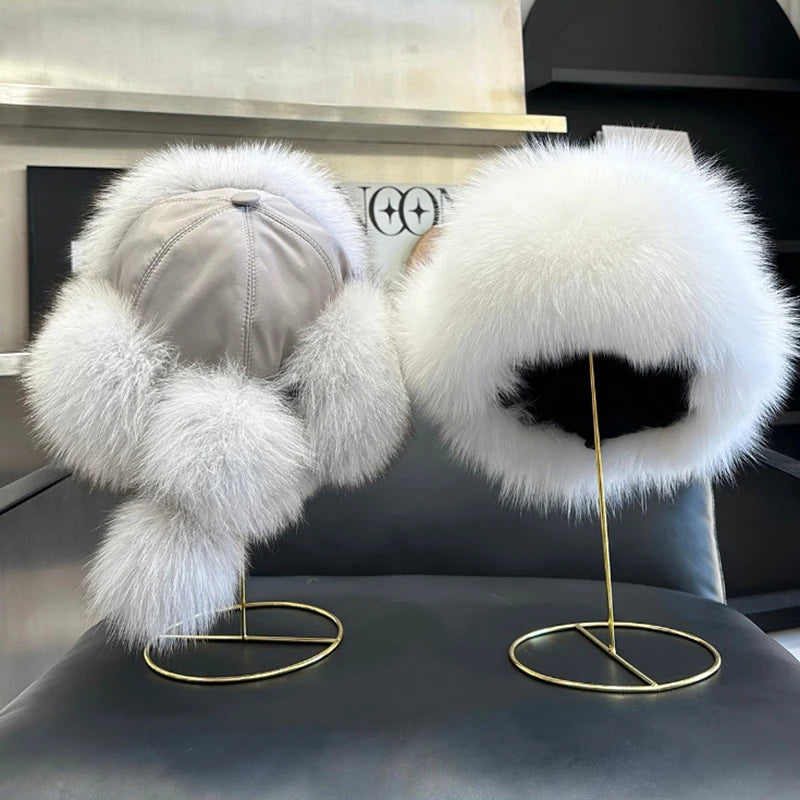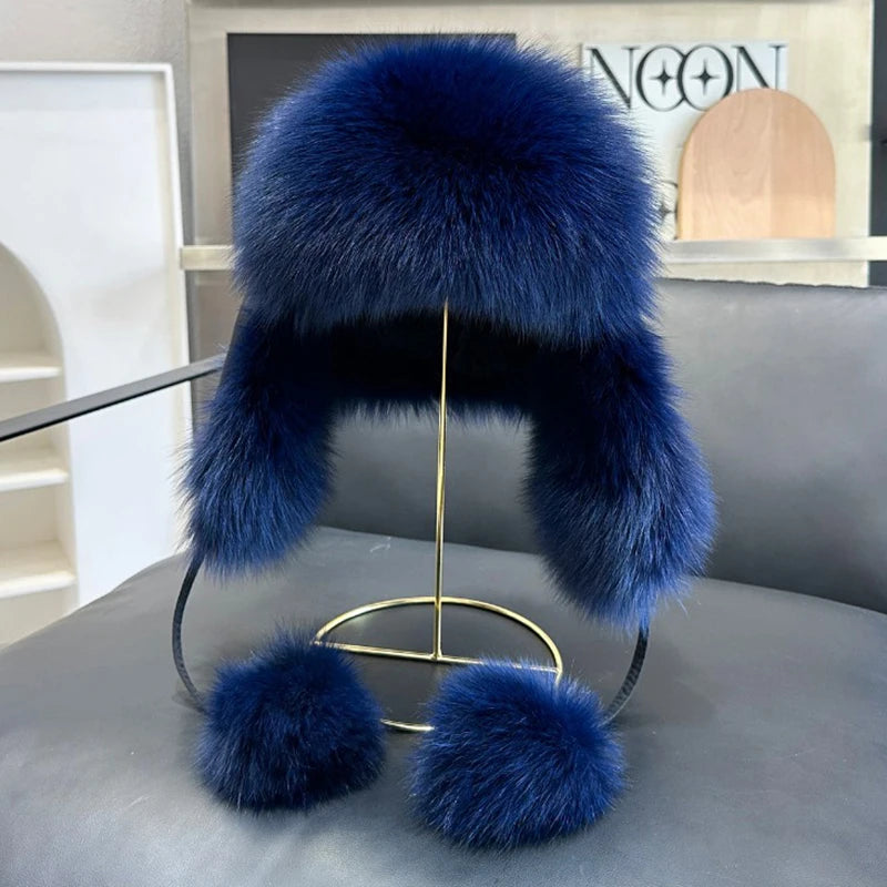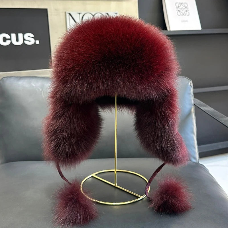 100% Echte Vossenbont Hoeden Dames Russische Oesjanka Aviator Trapper Sneeuw ...