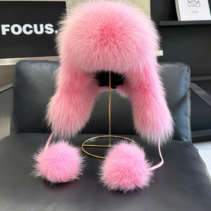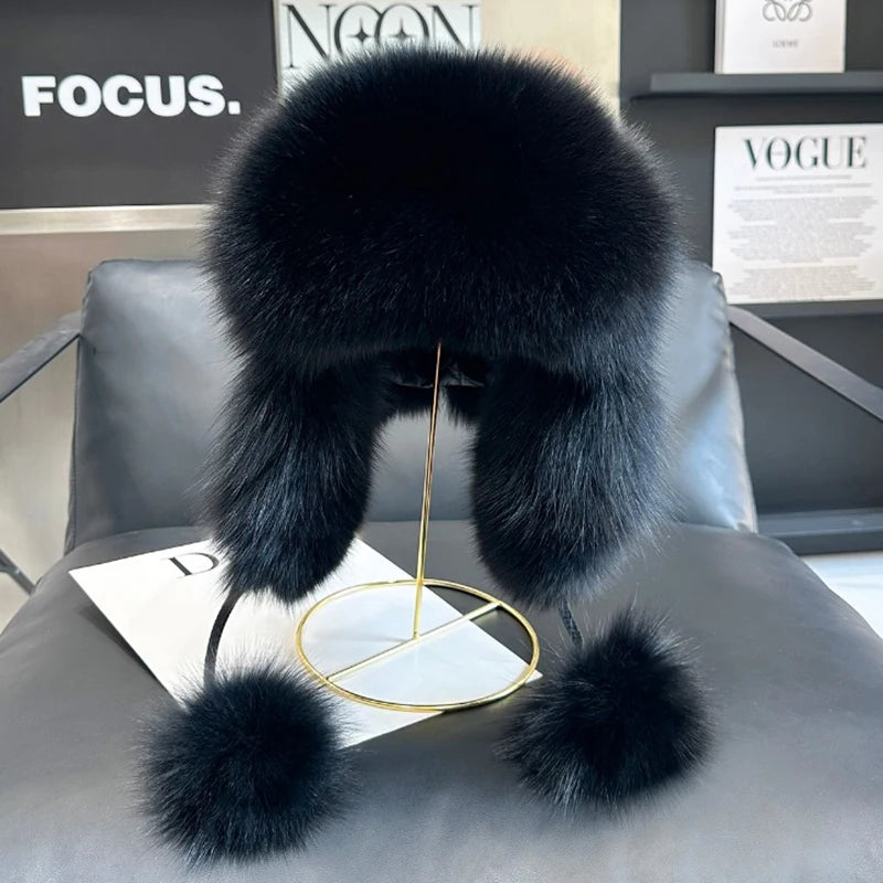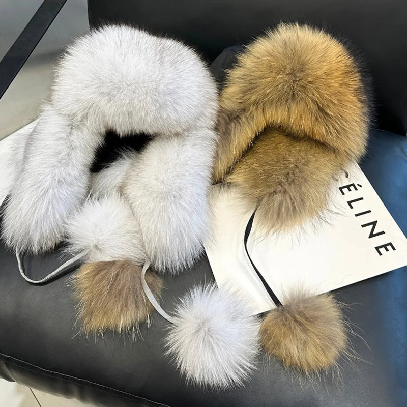 100% Echte Vossenbont Hoeden Dames Russische Oesjanka Aviator Trapper Sneeuw ...