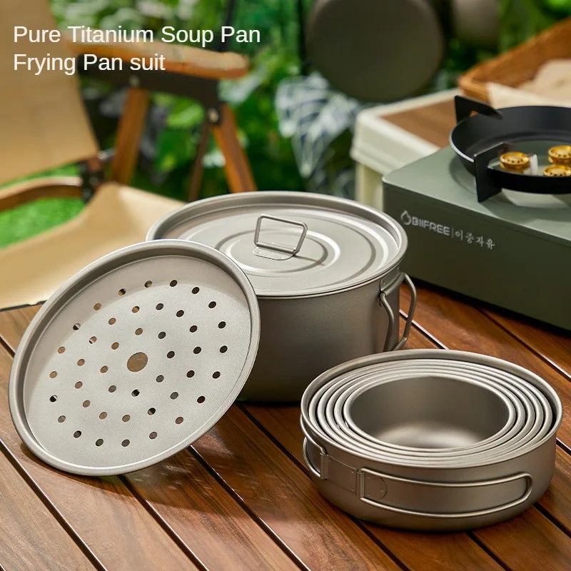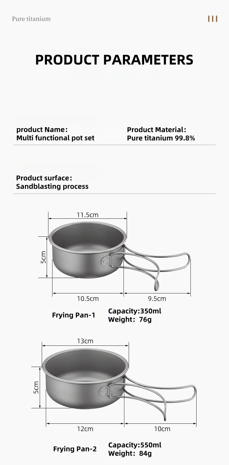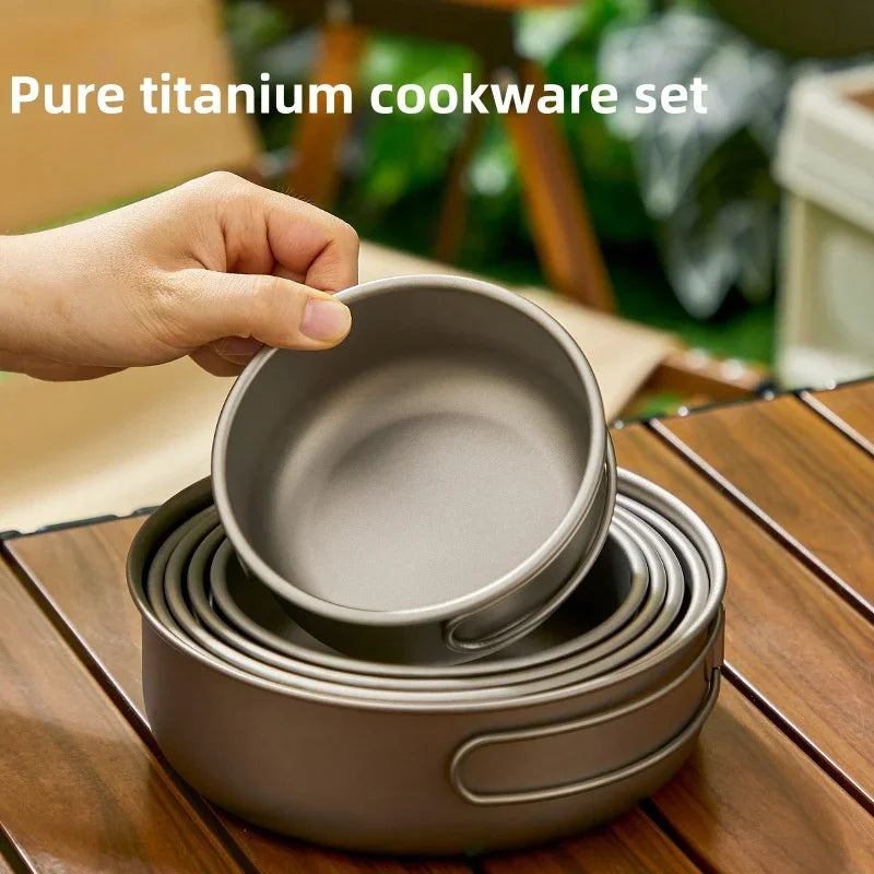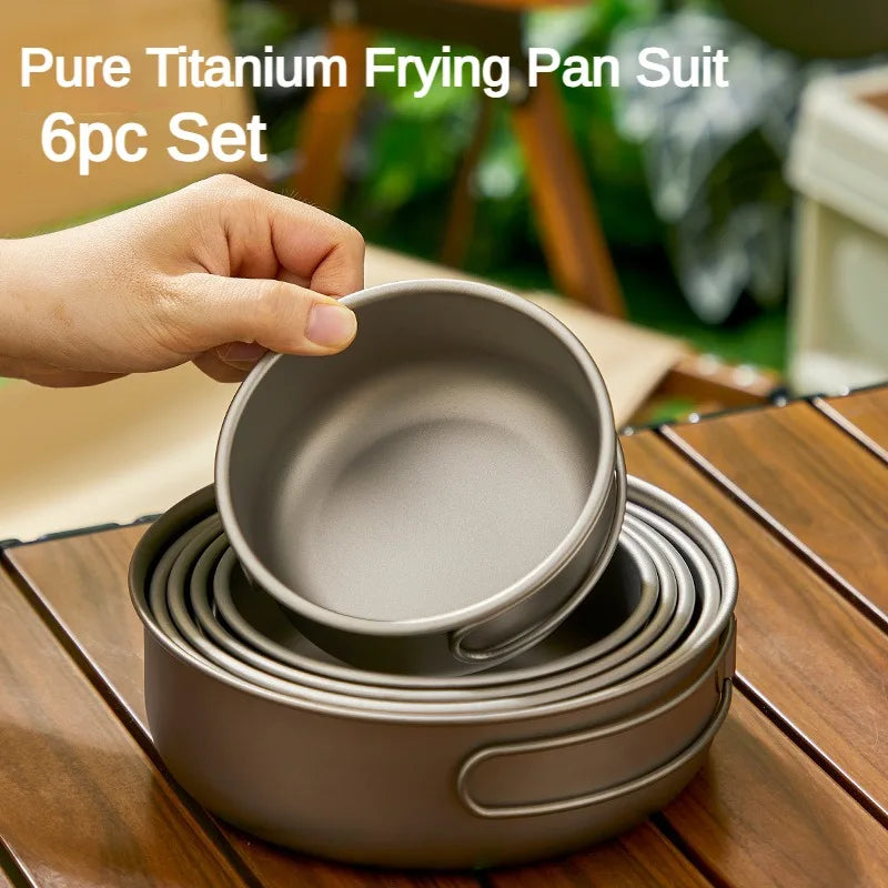 6 8pcs Pure Titanium Outdoor Pot, Frying Pan, Picnic Camping Combination Tabl...