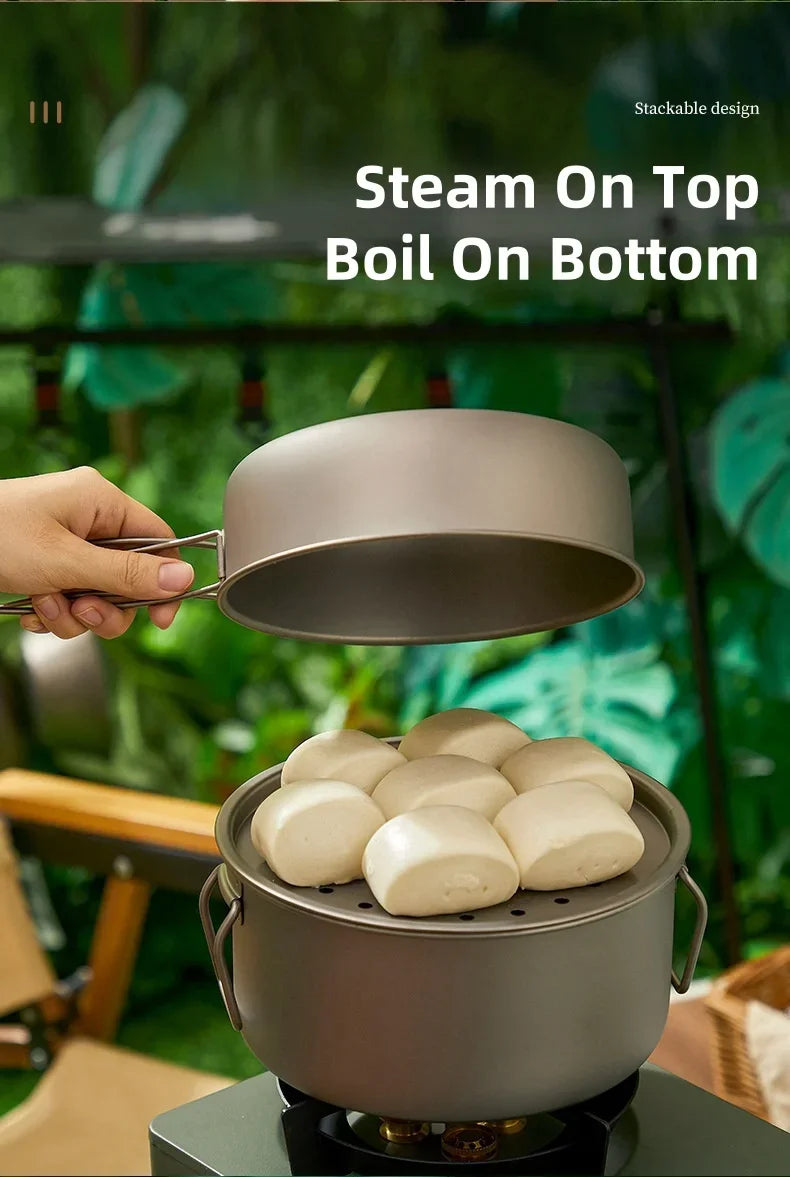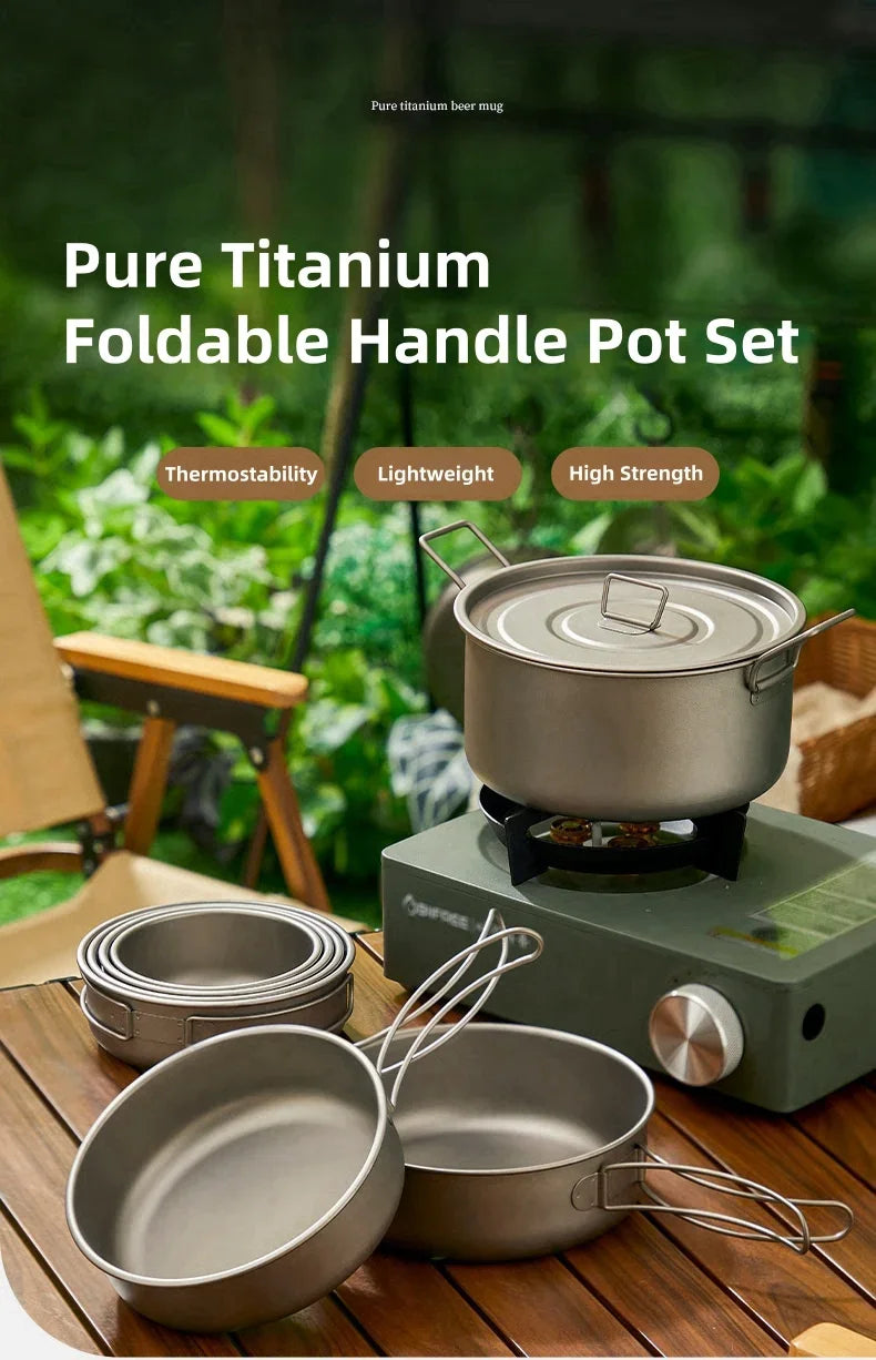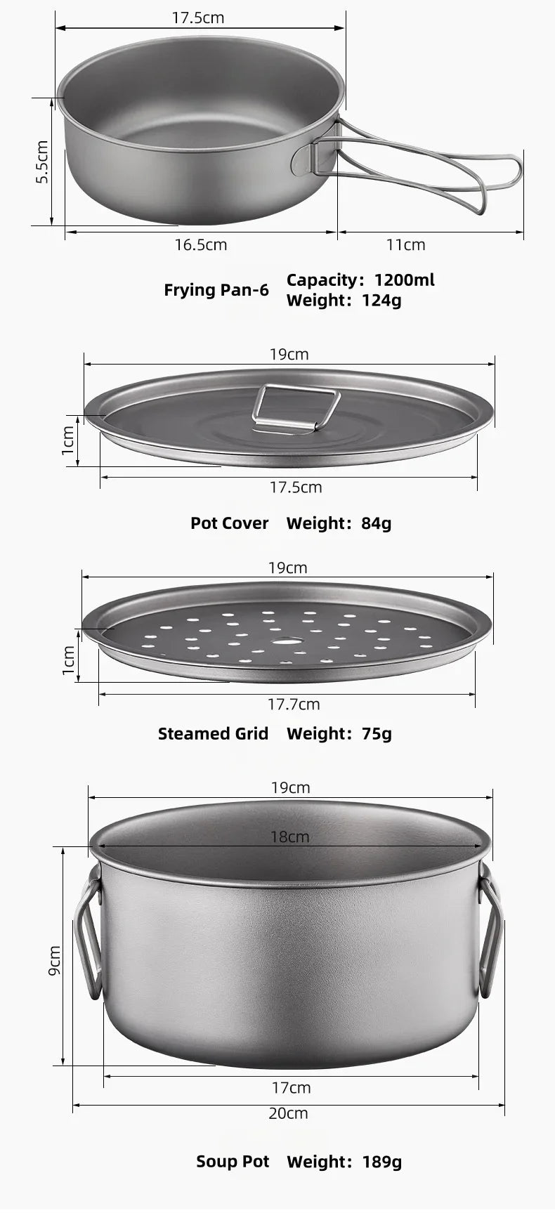 6 8pcs Pure Titanium Outdoor Pot, Frying Pan, Picnic Camping Combination Tabl...