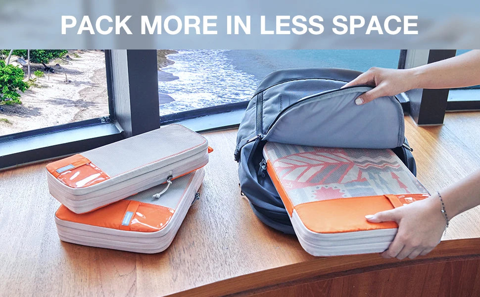 Een echte ruimtebespaarder - deze compressiereiskubussen werken net als een vacuümsealer. Door extra ritsen aan de buitenkant toe te voegen, kan de rits omhoog worden geritst, waardoor het kledingstuk op zijn plaats blijft en de binnenruimte wordt geminimaliseerd. Wat een verschil kunnen ze maken. Help reizigers om "twee keer zoveel" bagage in te pakken.