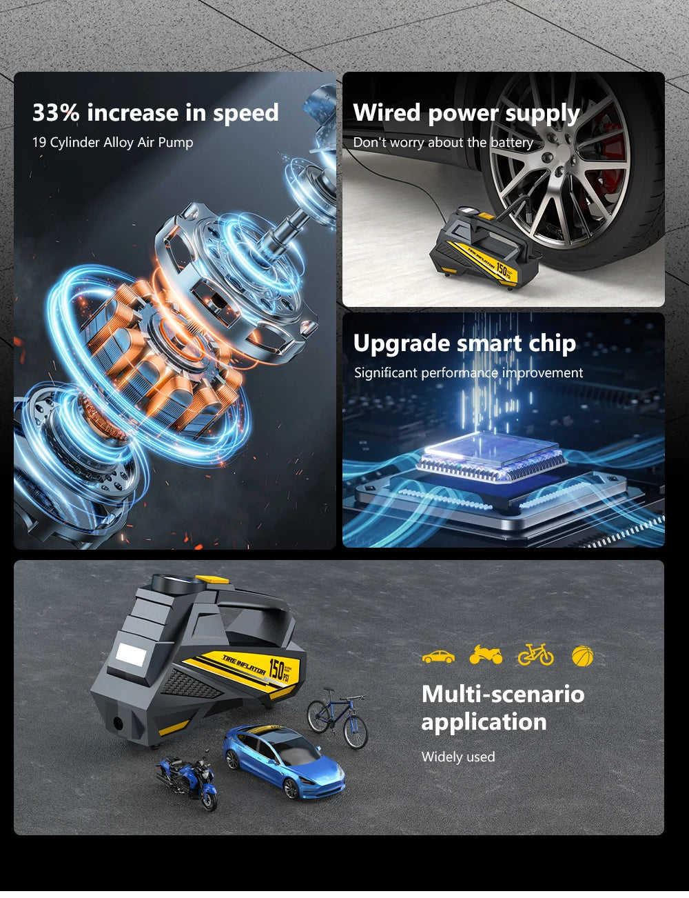 Draagbare autoluchtpomp met snoer, 12V 150psi, elektrische bandenpomp voor mo...