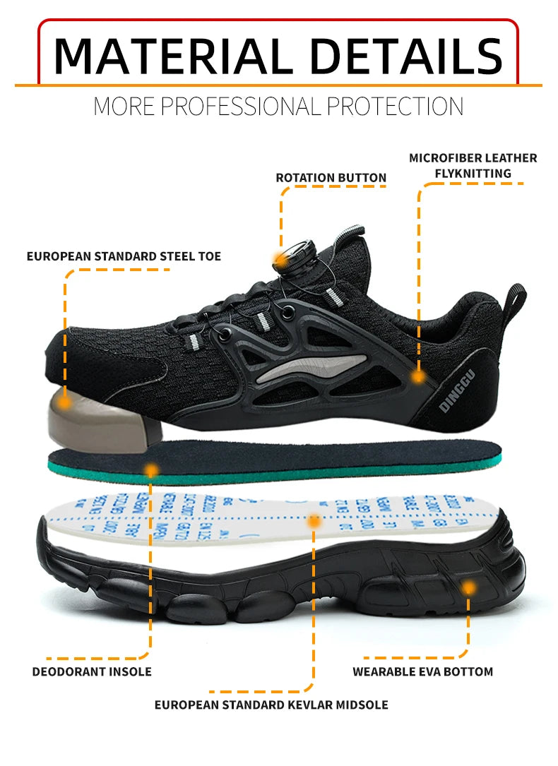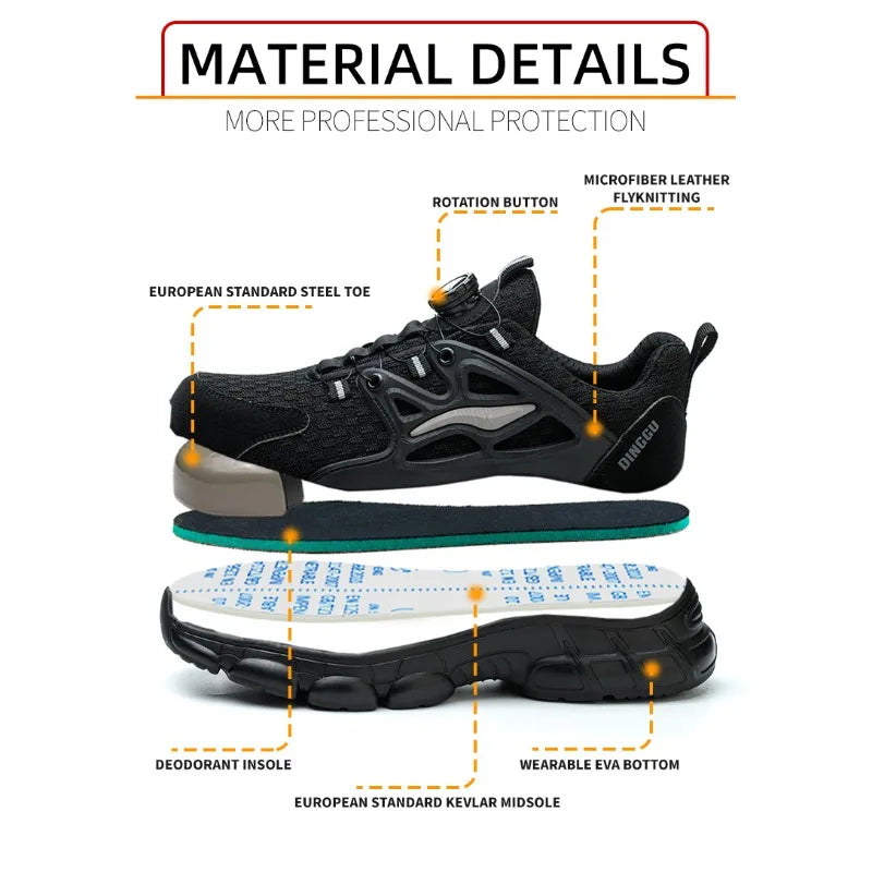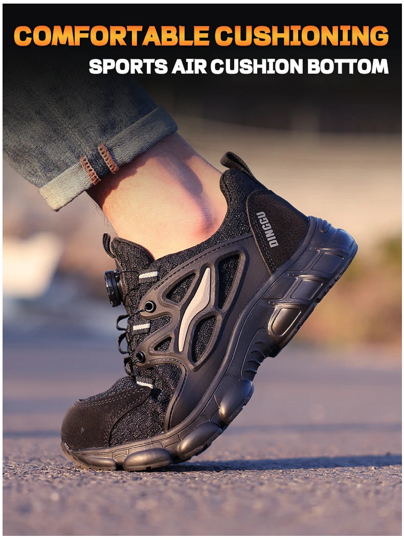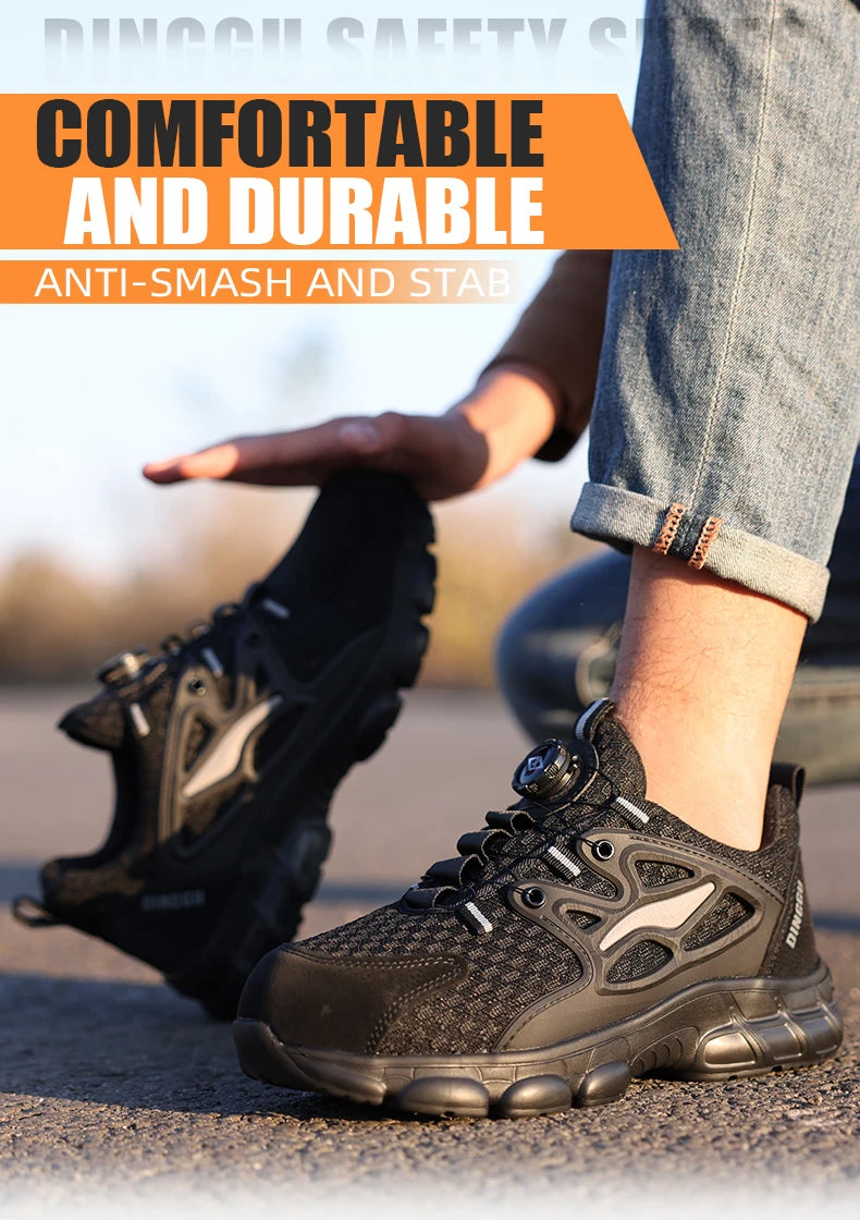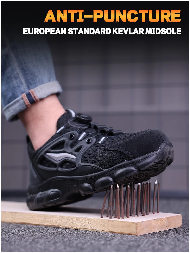 Mode Draaiknop Heren Stalen Neus Bouw Veiligheidsschoenen Anti-Smash Anti-Piercing Functies Onverwoestbare Sneakers