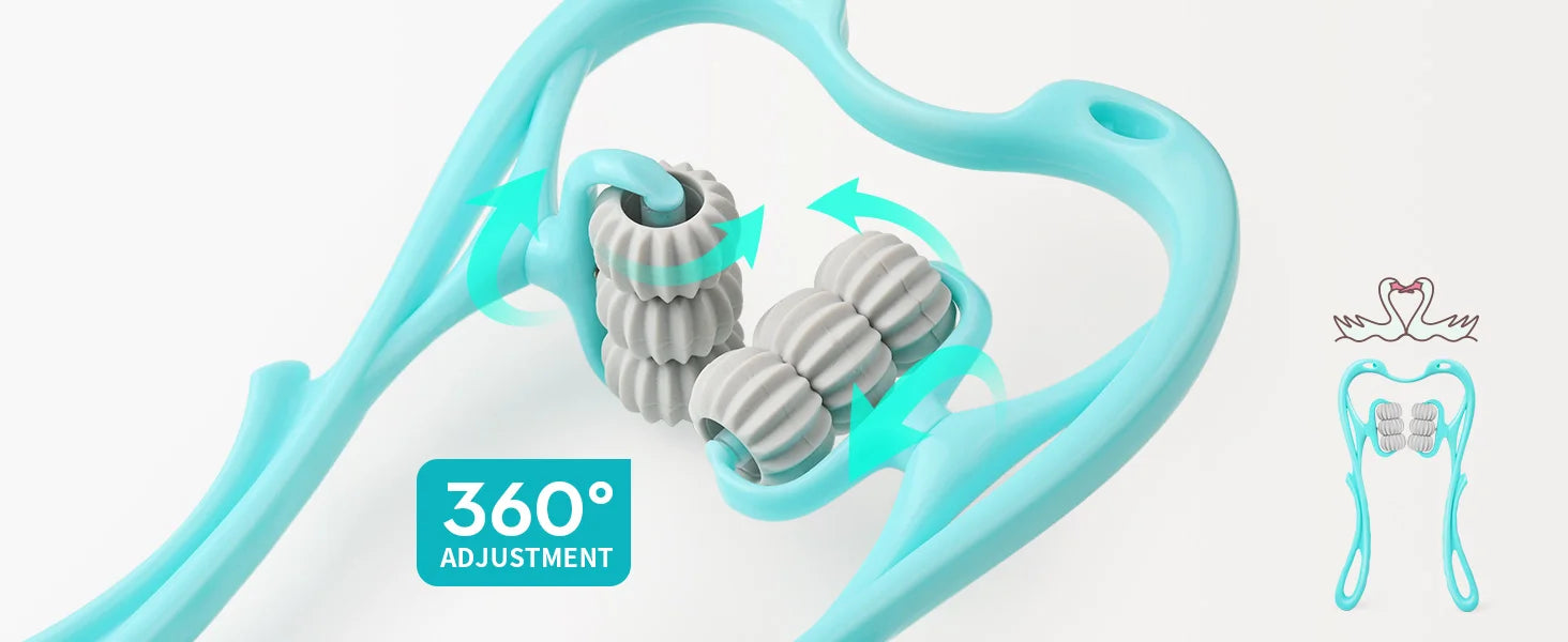 【Massageapparaat met 6 rollen】 Een nieuwe upgrade, gebaseerd op de curve van het menselijk lichaam. De zwanenvorm heeft een dubbelboogs ontwerp, wat comfortabeler is voor de schouders en nek. De elastische ondersteuning van PP-materiaal is onbreekbaar. De milieuvriendelijke TPR convexe massagekop is zacht, comfortabel en elastisch. De convexe punten stimuleren de acupunctuurpunten, wat zorgt voor een comfortabele ervaring en is geschikt voor een comfortabele ervaring van meerdere lichaamsdelen, niet beperkt tot de cervicale wervelkolom.