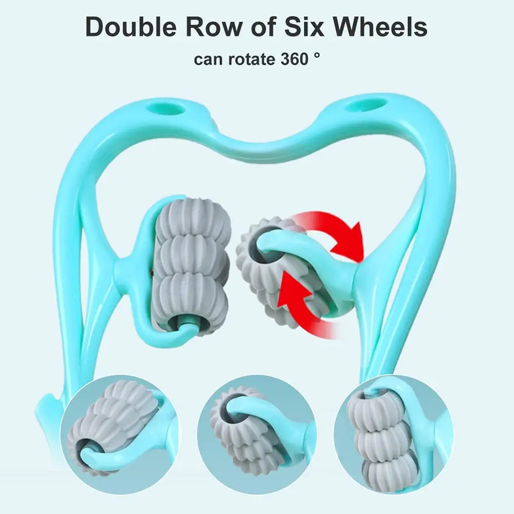 Nekrollermassager, nek- en schouderontspanner voor pijnverlichting in de diepe weefsels, 6 ballen, drukpuntmassager voor de nek, cervicale wervelkolommassager, spierontspannend voor been en rug