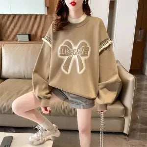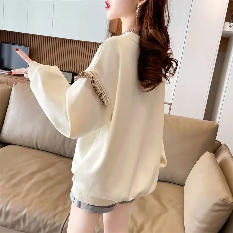 Sweatshirt met ronde hals voor dames zonder capuchon, losvallend dun ontwerp,...