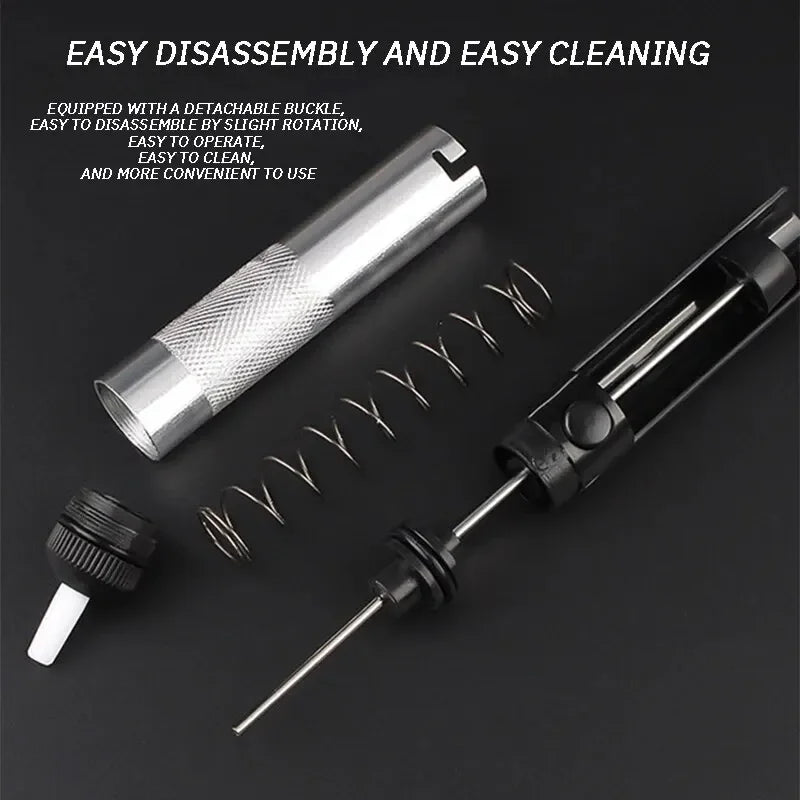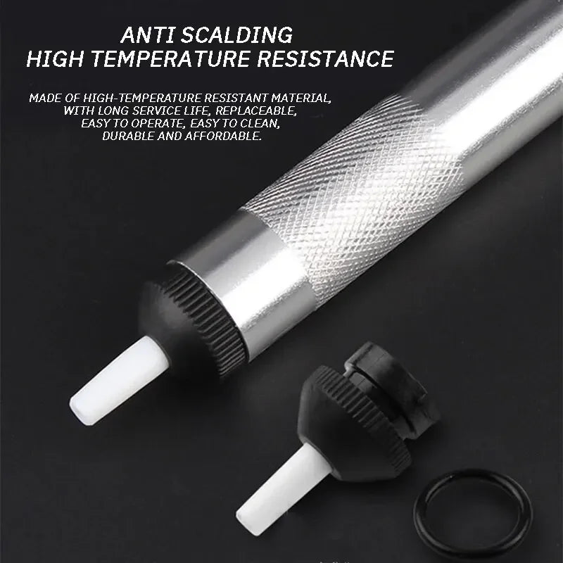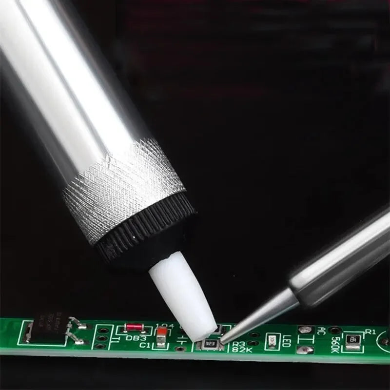3. Terwijl u de soldeerbout verwijdert, bevestigt u snel het soldeerzuigmondstuk aan de soldeerverbinding en drukt u op de reboundknop