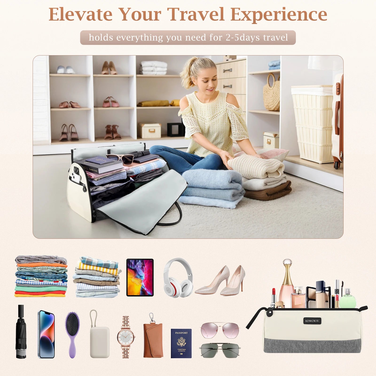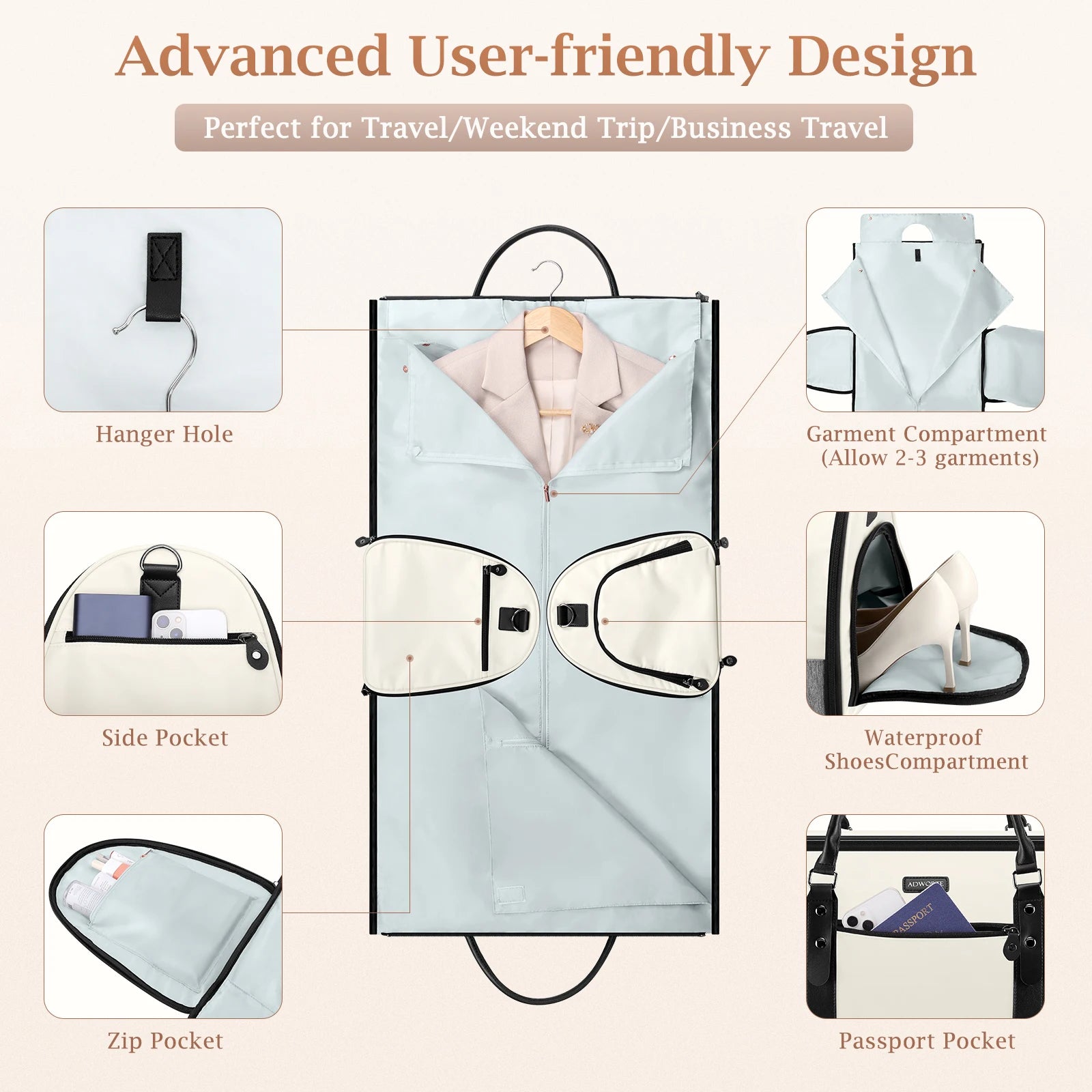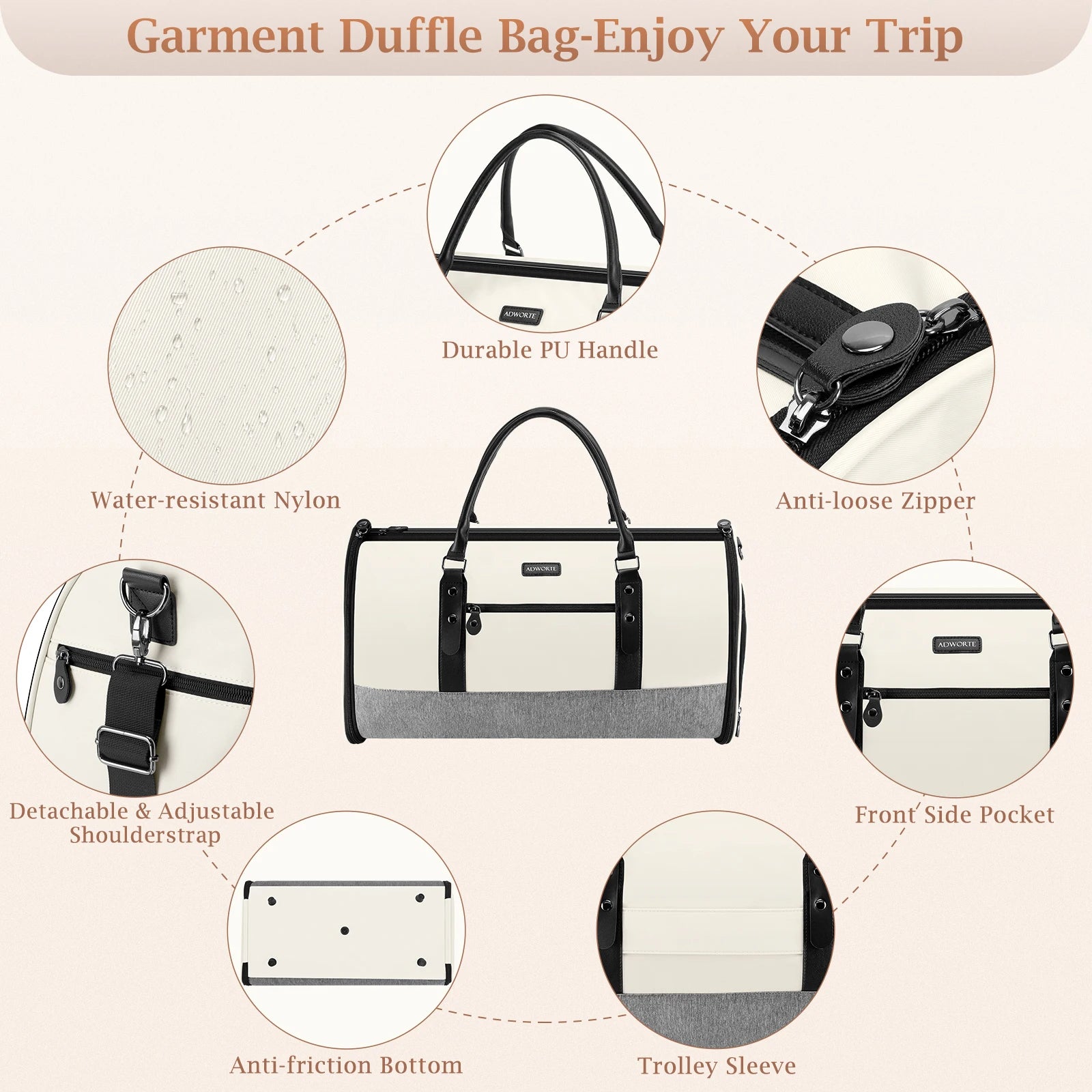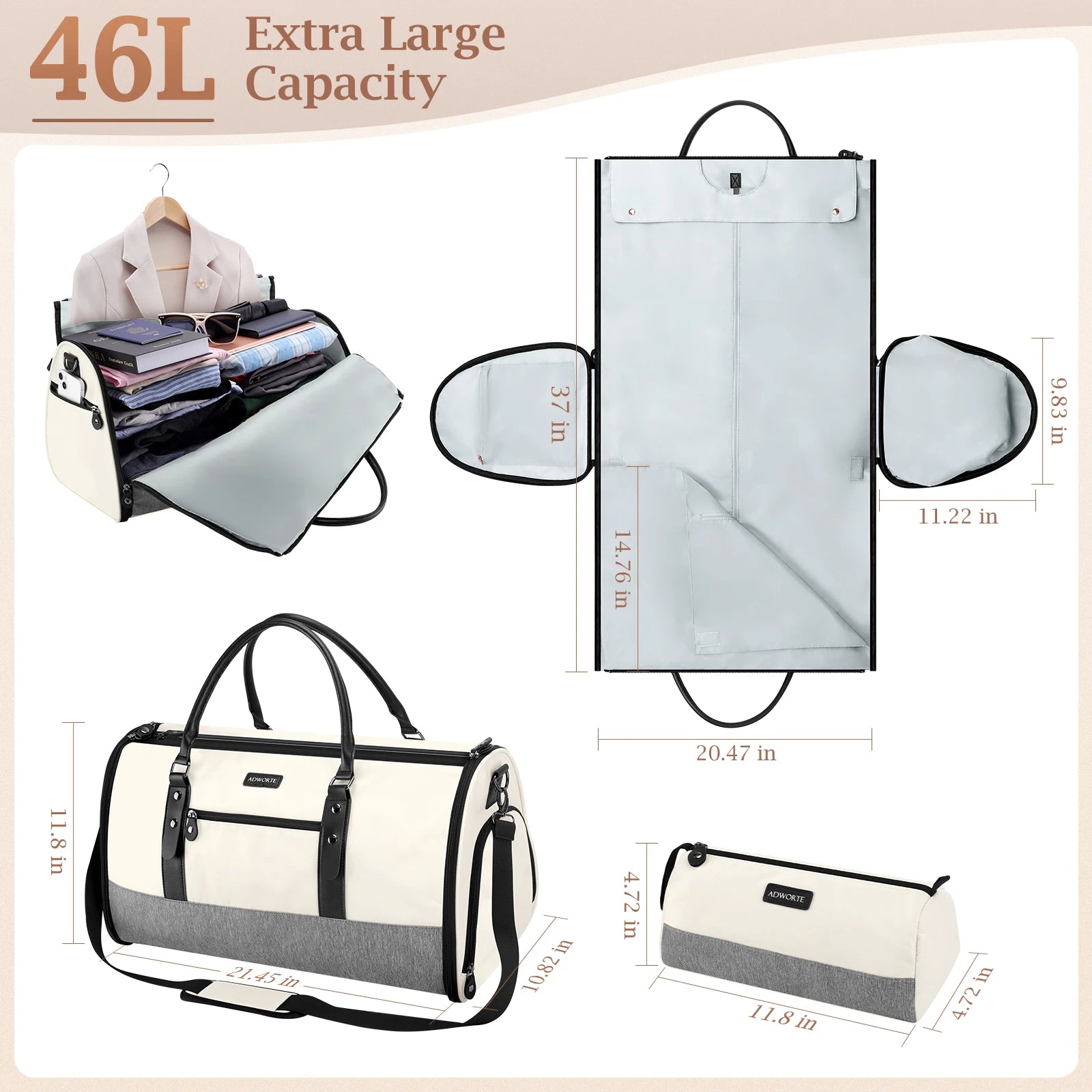 【Stijlvolle 2-in-1 kledingtas】De reistas van Adworte combineert elegantie met functionaliteit en is gemaakt van hoogwaardige, duurzame materialen met een hoogwaardige afwerking. De kledingtas transformeert in een hangende kledingtas voor op reis, perfect voor het netjes opbergen van pakken, jurken of avondjurken. Houd ze kreukvrij en klaar om te dragen. Of u nu op reis bent, een zakelijke bijeenkomst heeft of een speciaal evenement bijwoont, deze veelzijdige handbagage zorgt ervoor dat uw kleding in onberispelijke staat aankomt, waardoor strijken na de reis niet meer nodig is.