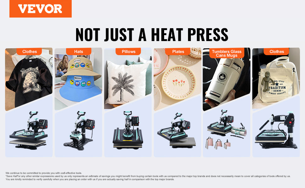 • Veelzijdige hittepers: De 8-in-1 multifunctionele hittepers wordt geleverd met meerdere opzetstukken, waardoor uw creativiteit grenzeloos de vrije loop krijgt. Of u nu prachtige ontwerpen wilt overbrengen op T-shirts, kussenslopen, hoeden, mokken of keramische borden, onze hittepers maakt het u gemakkelijk. Hij is uitgerust met opzetstukken voor tumblerpersen van 170 ml/350 ml/480 ml/850 ml. De verbeterde, grote maat van 850 ml kan twee mokken tegelijk verwerken, wat de werkefficiëntie aanzienlijk verhoogt!